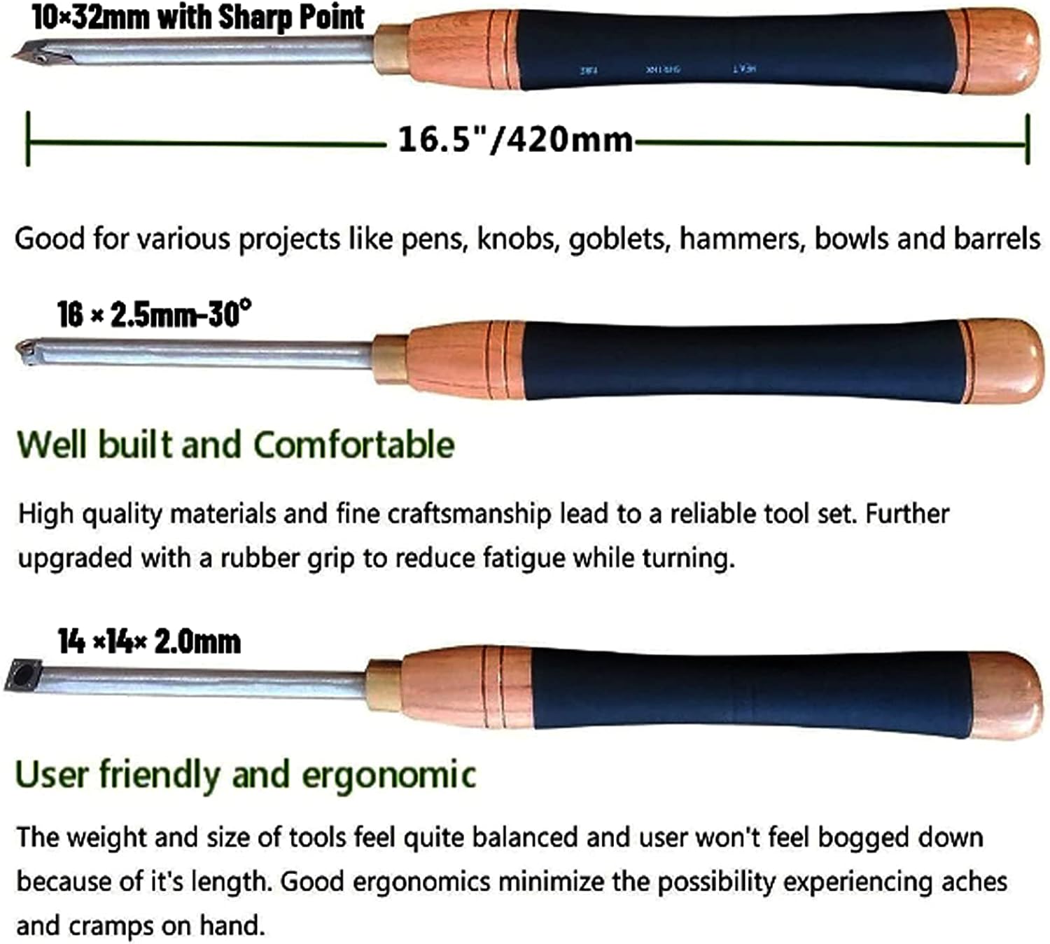 丸型および角型旋盤工具、快適なグリップハンドル付き、木材愛好家、DIY