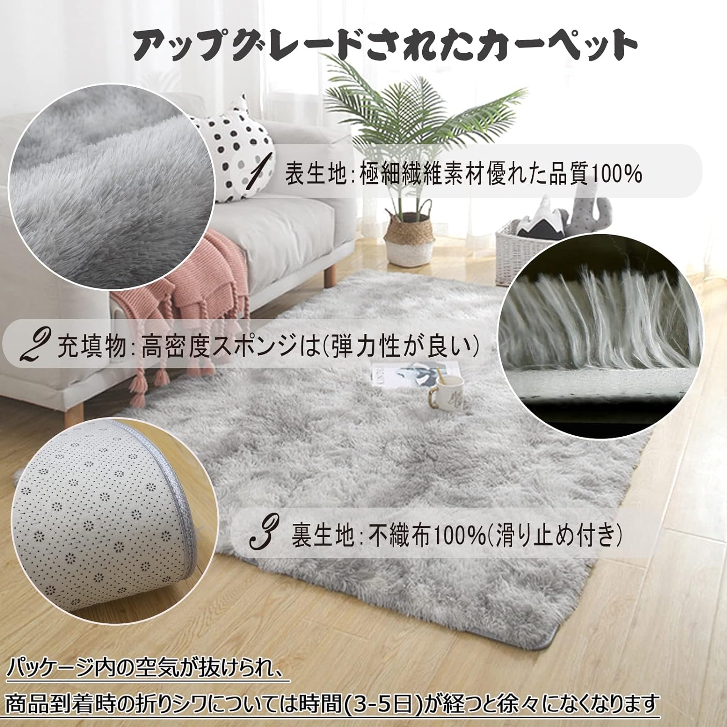 120x160cm 滑り止め付 洗えるラグ 抗菌 ふわっと手触り優しいフランネルラグ 約1.5畳 折り畳み 長方形 (グレー)