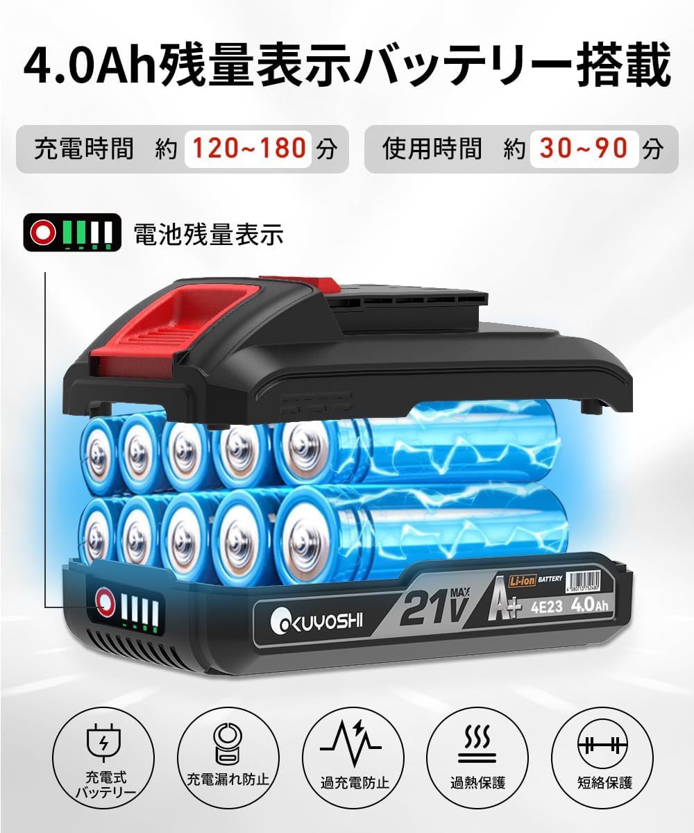 小型 8インチ 4000mAhバッテリー1個セット付け【電池残量表示】 ブラシレスモーター 800W高出力