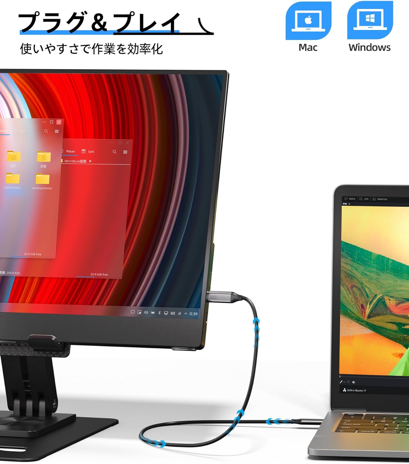 モバイルディスプレイ FHD 非光沢 A+スクリーン IPS液晶パネル USBType-C miniHDMI スタンド付き PS4/PS5/Switch/PC/Macなど対応