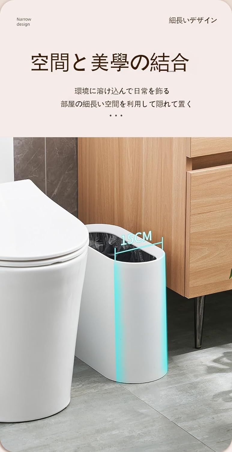 おしゃれ シンプル スリム くずかご ダストボックス 寝室 リビング オフィス 洗面所用 (グレー)