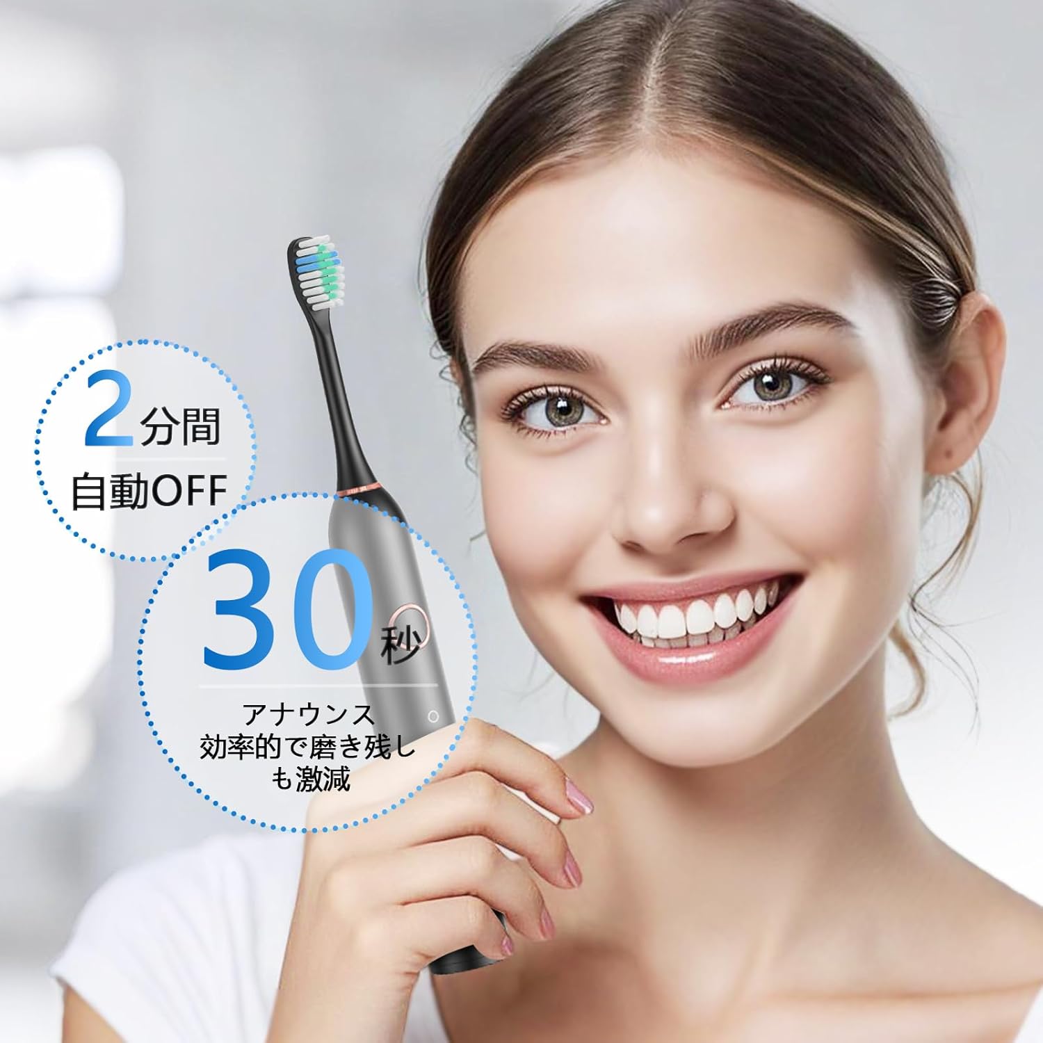 音波歯ブラシ 替えブラシ8本付 USB充電 収納ケース付き 2分間オートタイマー機能