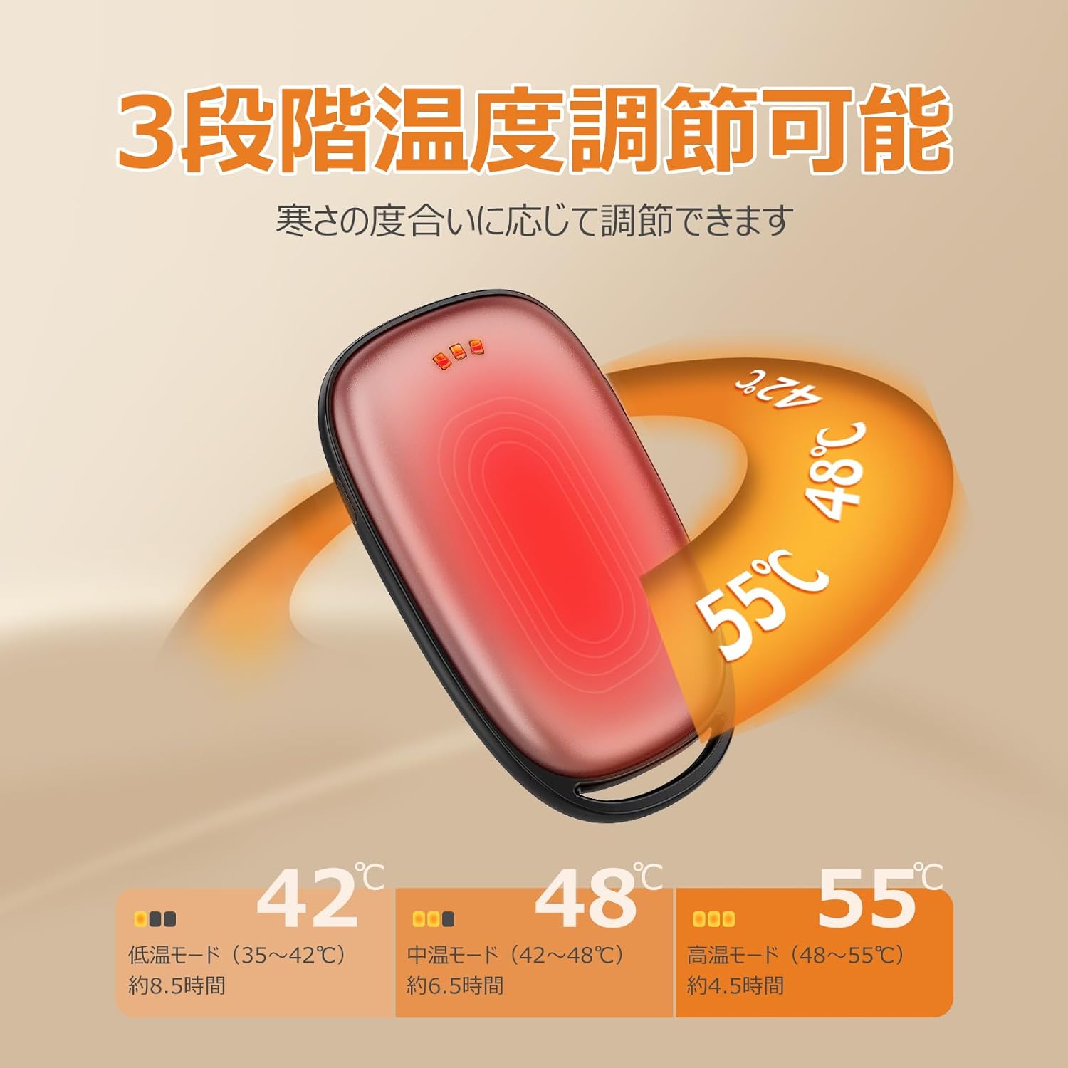 温度調節可能 電気カイロ 電気あんか 薄型 小型 電熱カイロ 6000mAh大容量 2面急速発熱 モバイルバッテリ