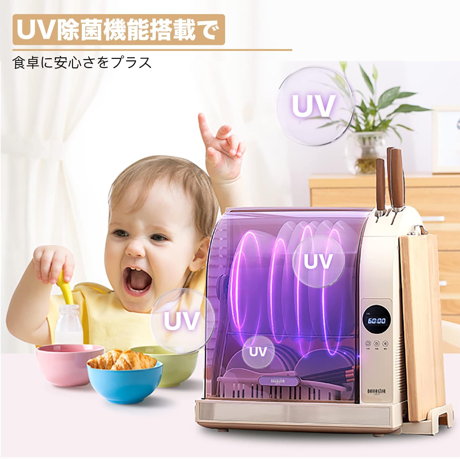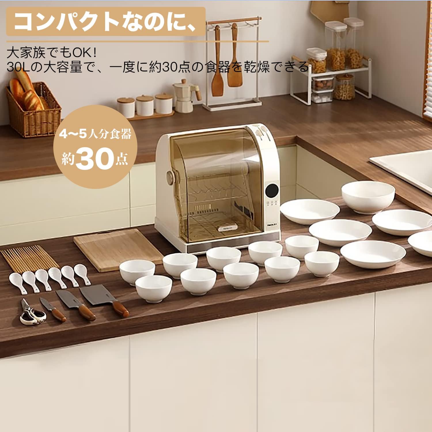 高温乾燥 UV滅菌 5人分 キッチンドライヤー 2層&30L大容量 まな板乾燥 タイマー付