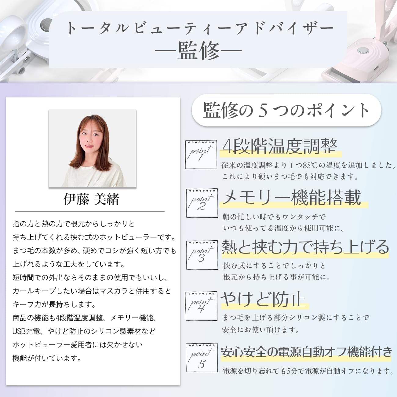 充電式 4段階温度調整 持ち運び まつ毛カーラー