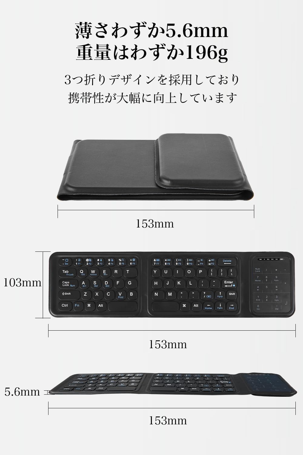 2つ折りたたみ式 ワイヤレス キーボード 196g 超軽量 薄型