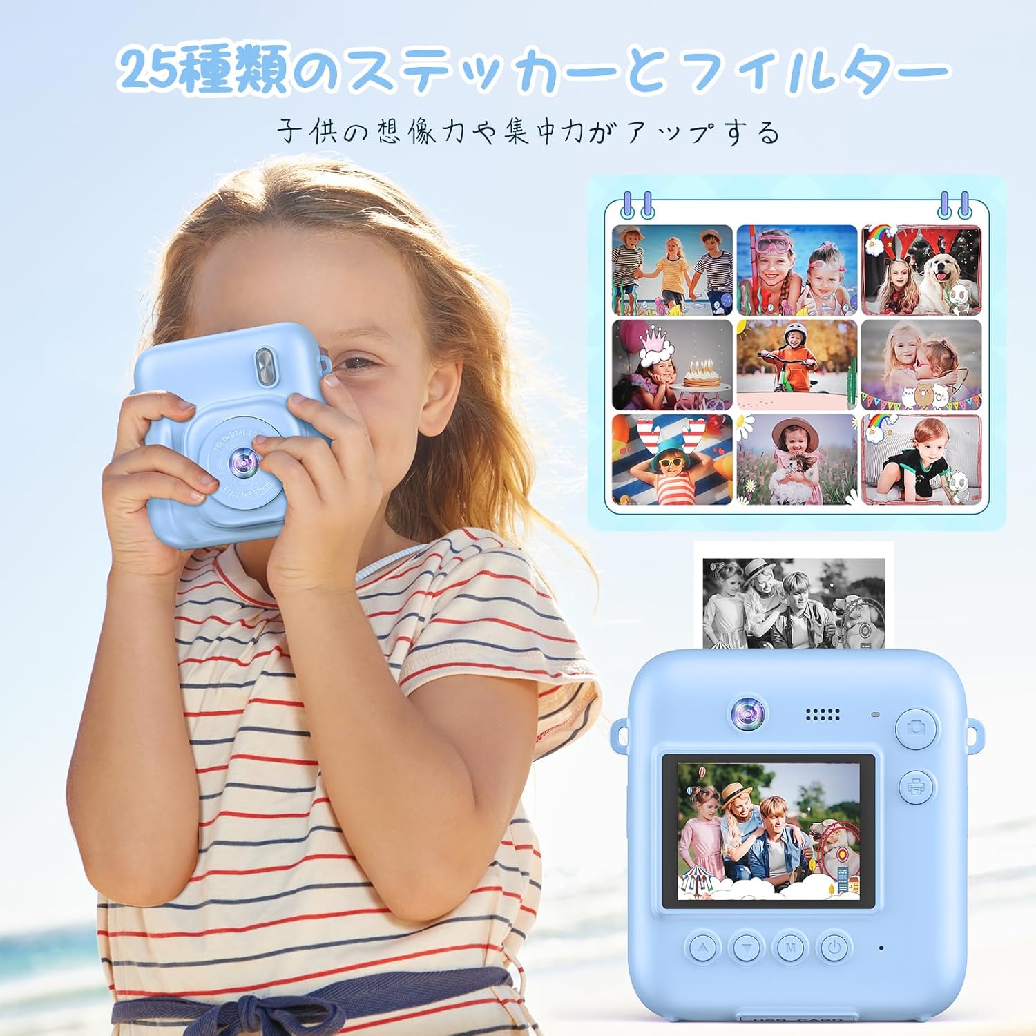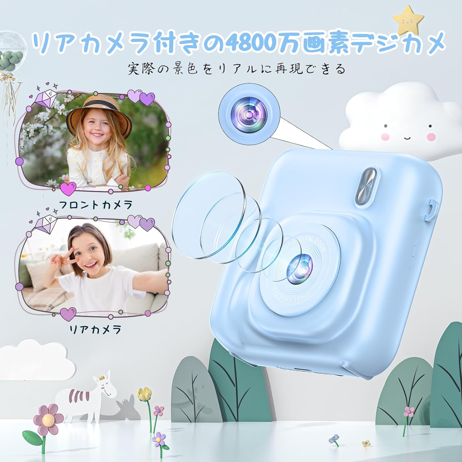 インスタントデジカメ デジタルカメラ キッズカメラ 子供カメラ デジカメ デジタルカメラ 印刷 プリンターでき 4800万画素 1080P コンパクトカメラ 16倍デジタルズーム 印刷 プレゼント 32gメモリカー付属 ブルー