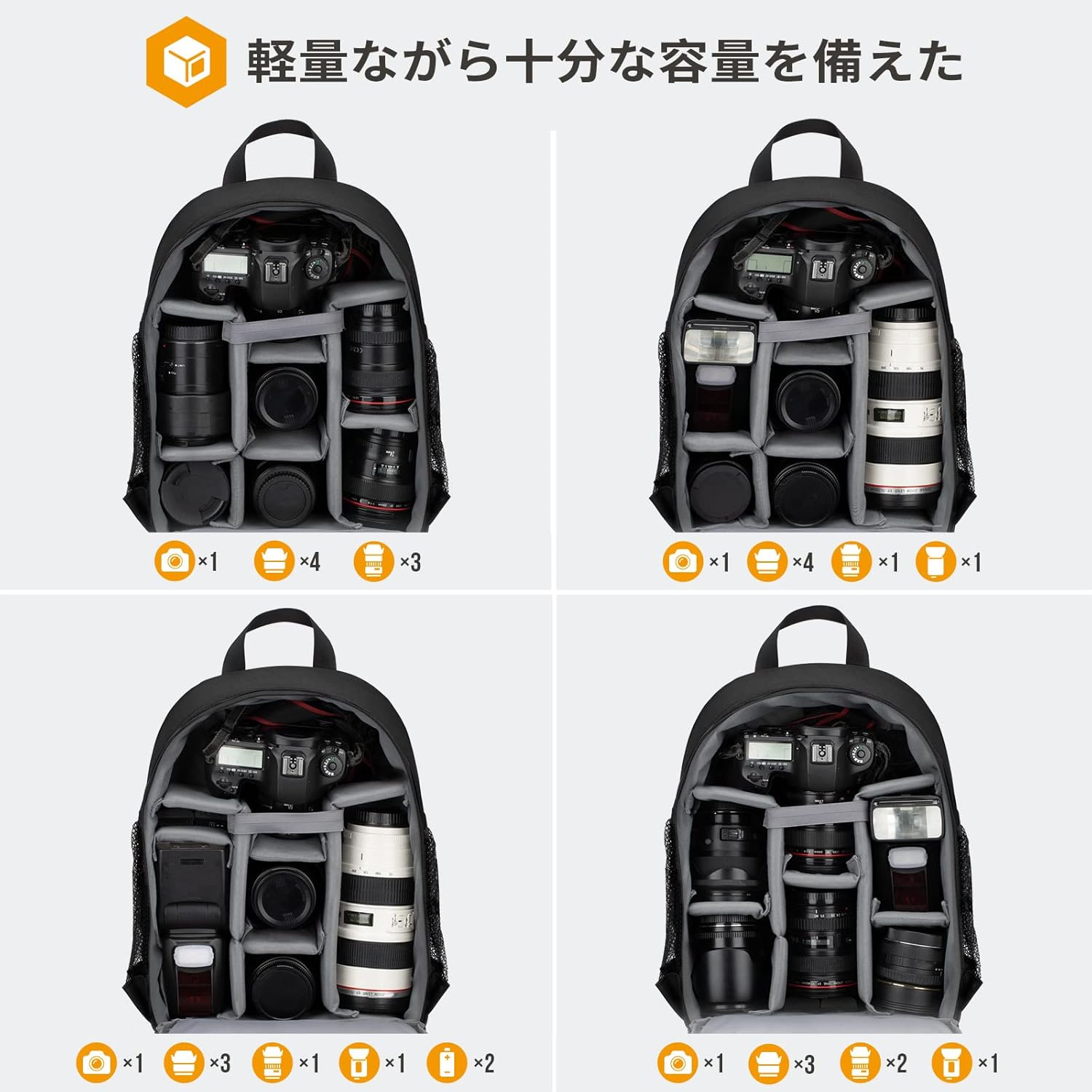 三脚収納 カメラバックパック レインカバー付き カメラリュック