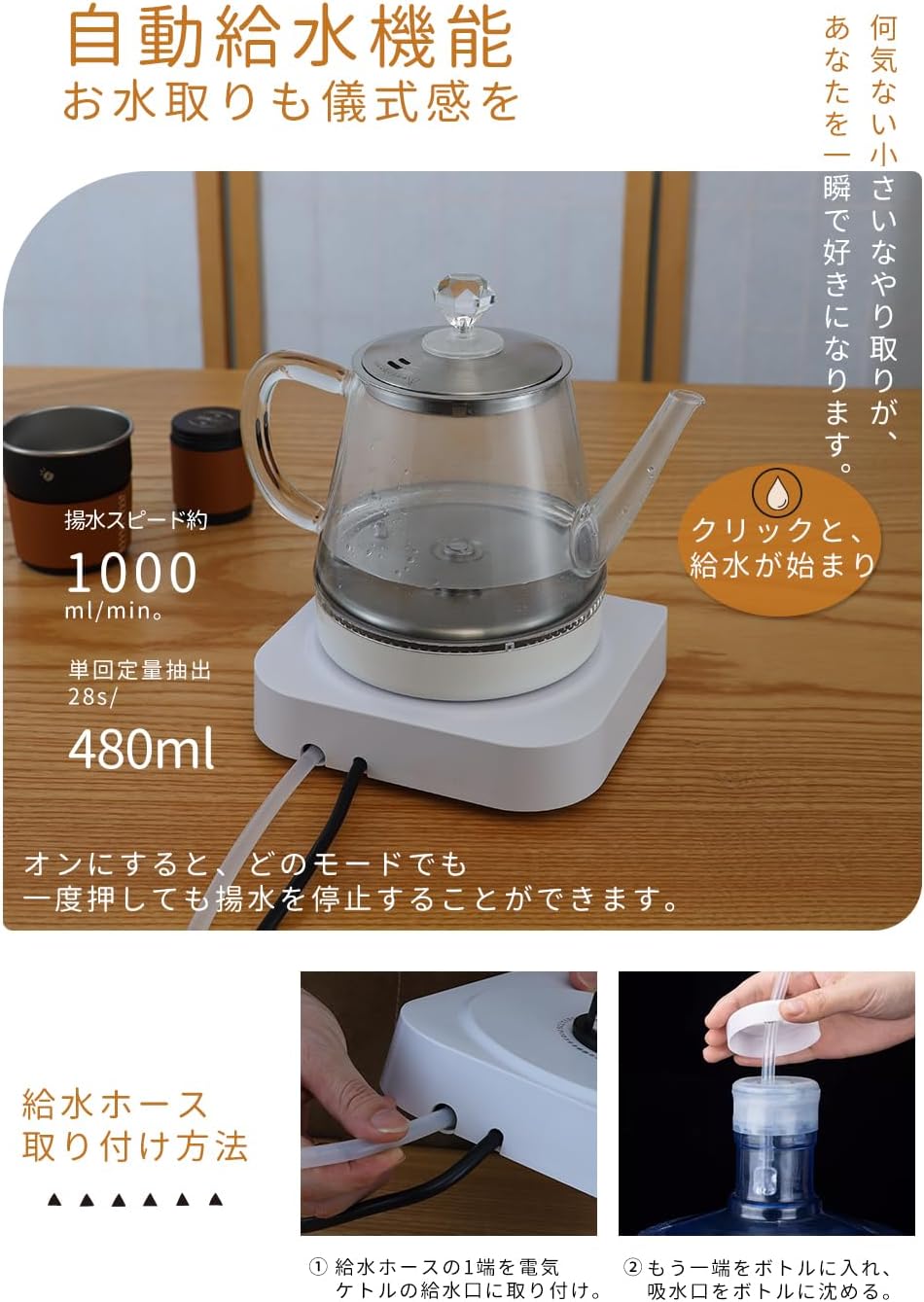 耐熱ガラスケトル 1000W LEDライト カフェケトル 電気ポット 温度調整