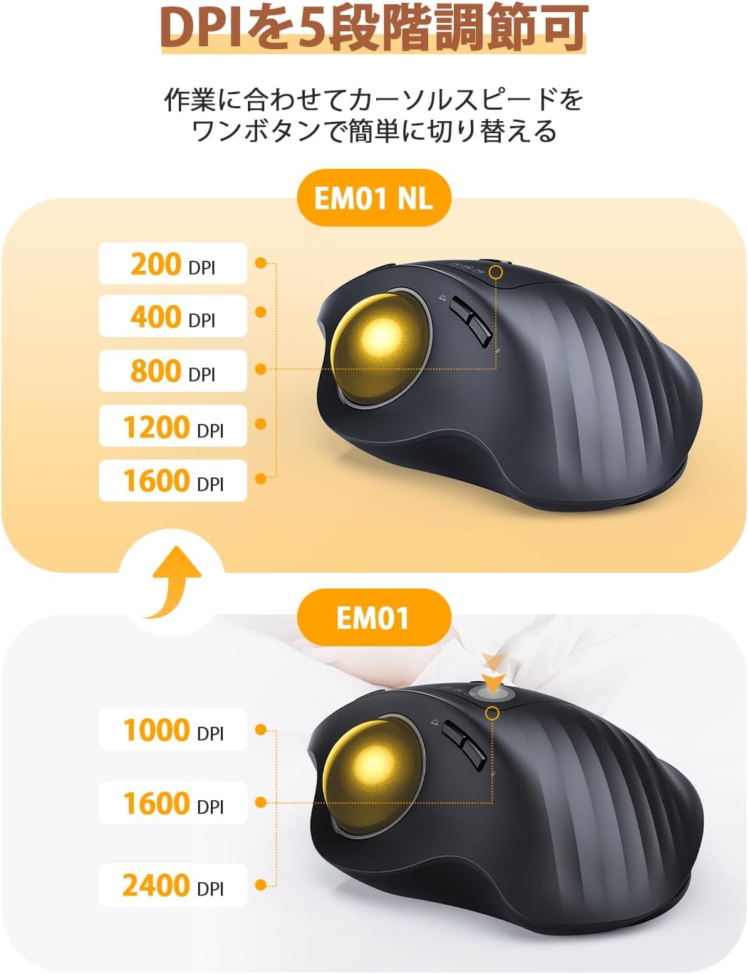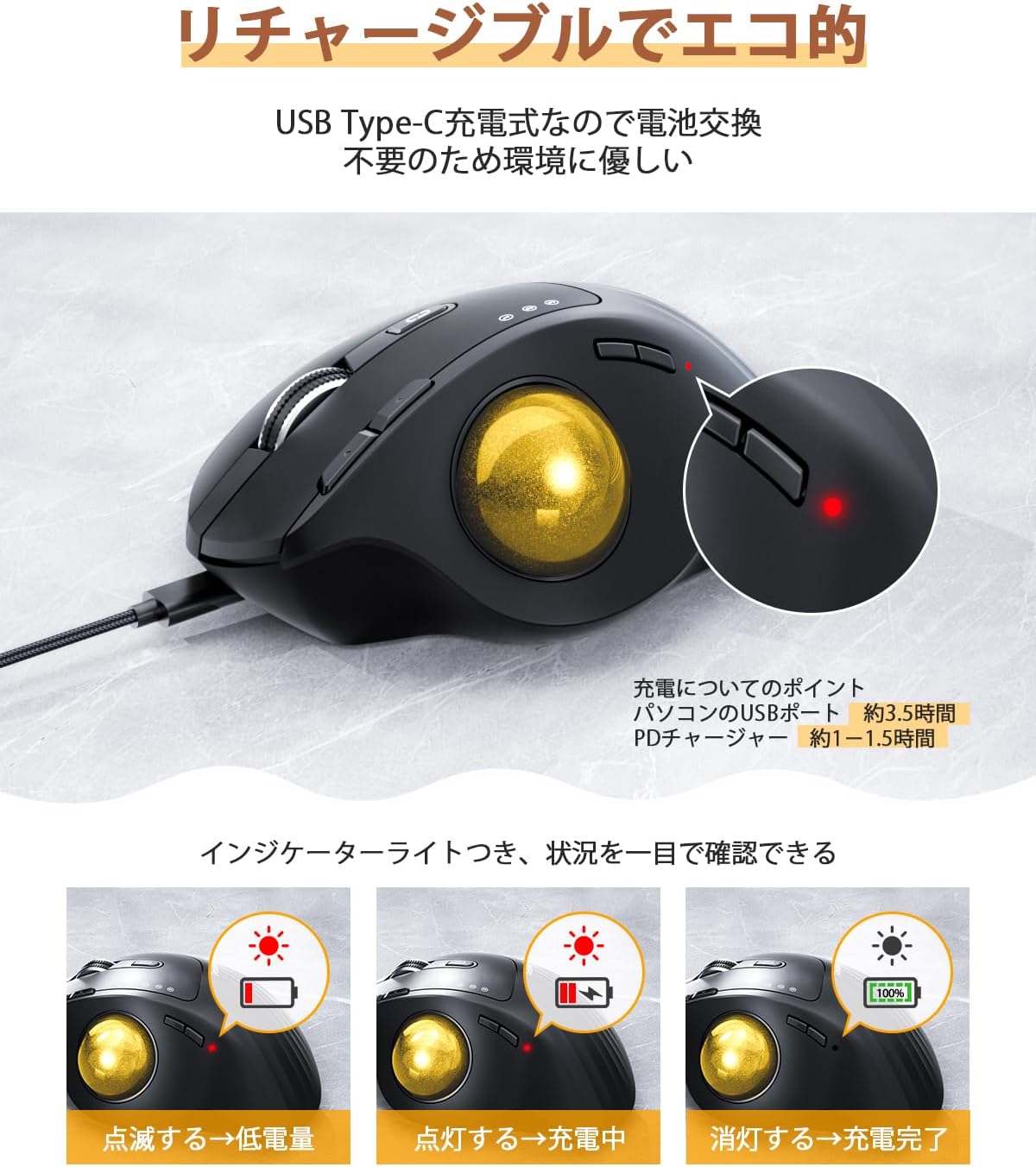 3台デバイス同時接続ワイヤレスマウス 5段階調節DPI 7ボタン トラックボールマウス無線