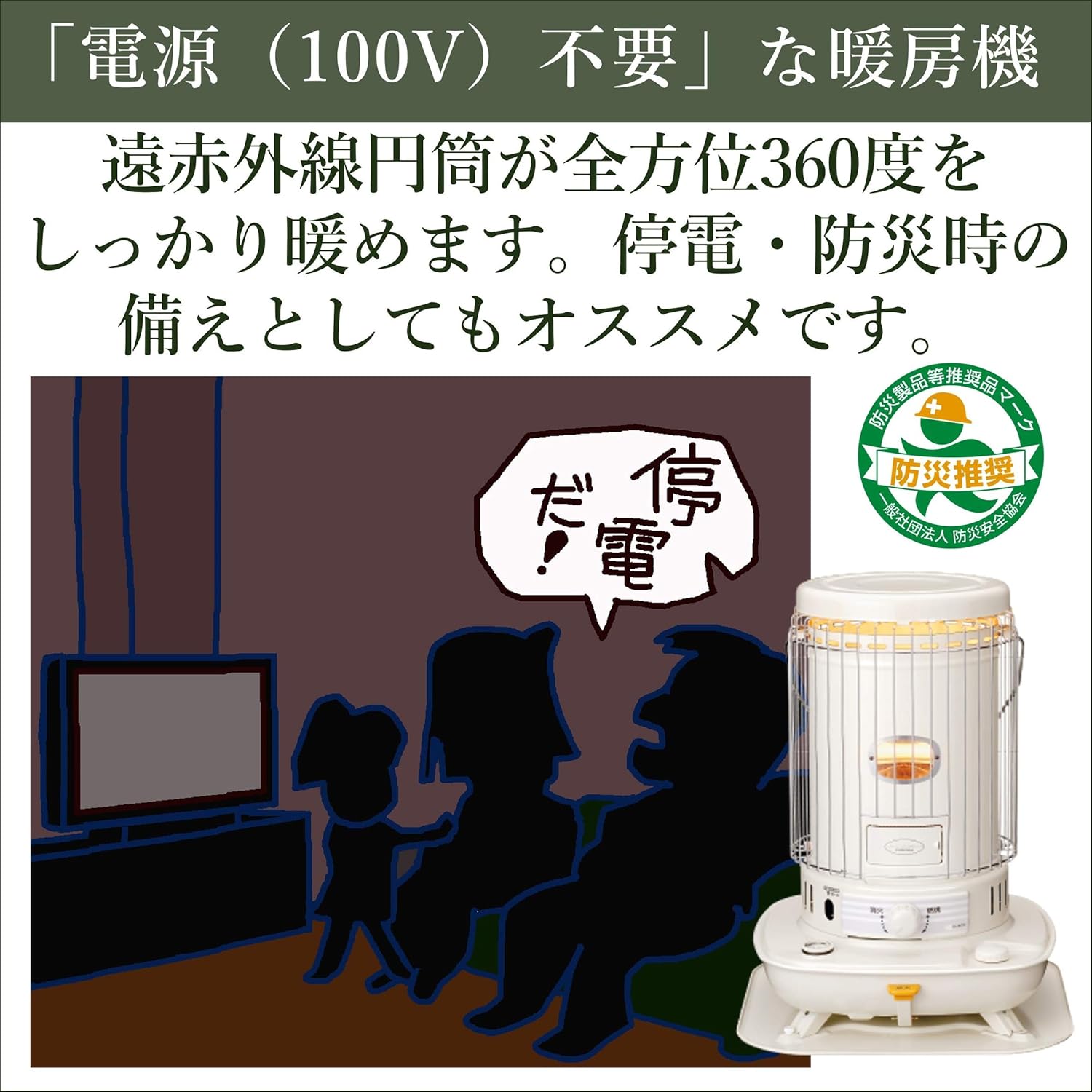 対流型 (木造17畳 / コンクリート23畳まで) 遠赤外線 電源不要 防災対策 キャンプ タンク容量7L 耐震自動消火装置付