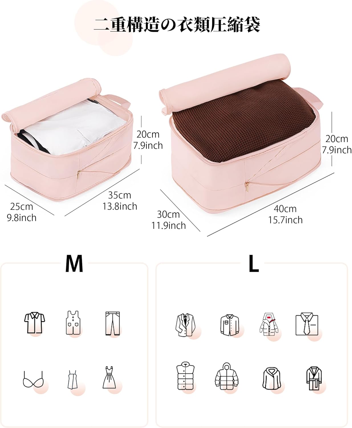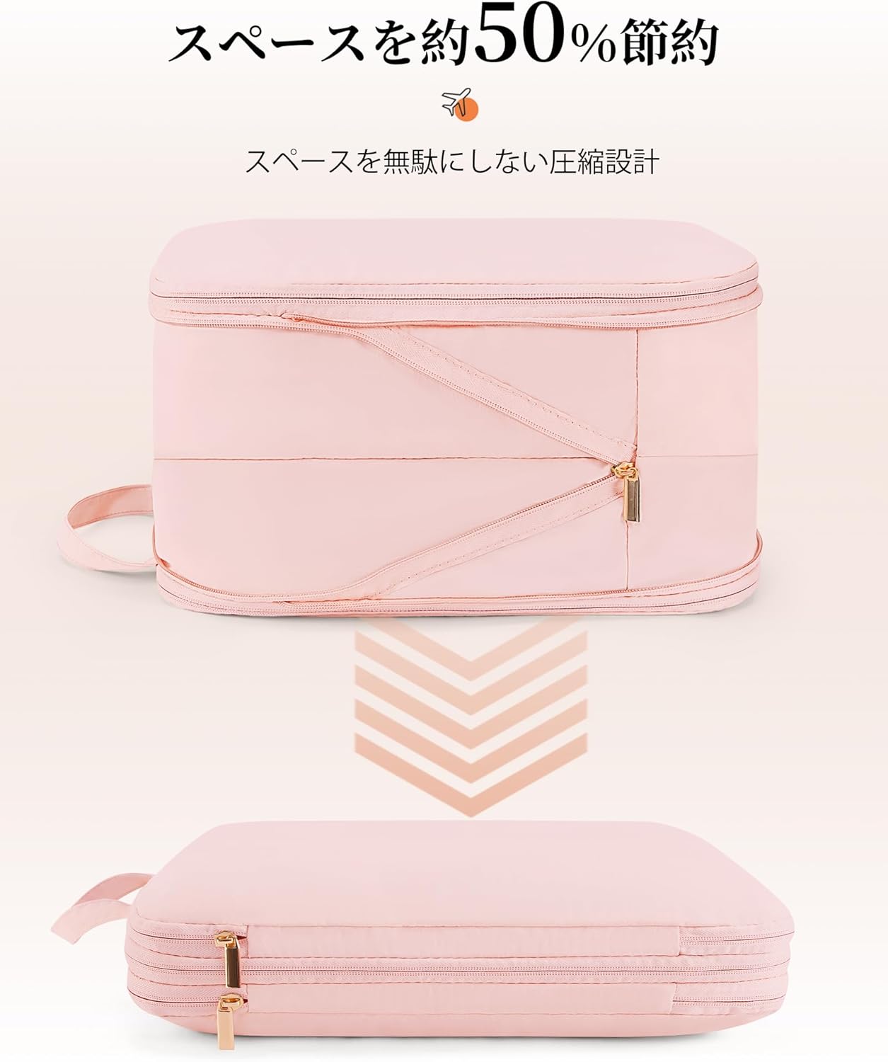 圧縮ポーチ 旅行用圧縮袋 旅行用ポーチ大容量 両面収納 防水ナイロン製 スーツケース 圧縮バッグ 衣類仕分け整理 パッキング 出張 旅行 便利グッズ (ピンク)