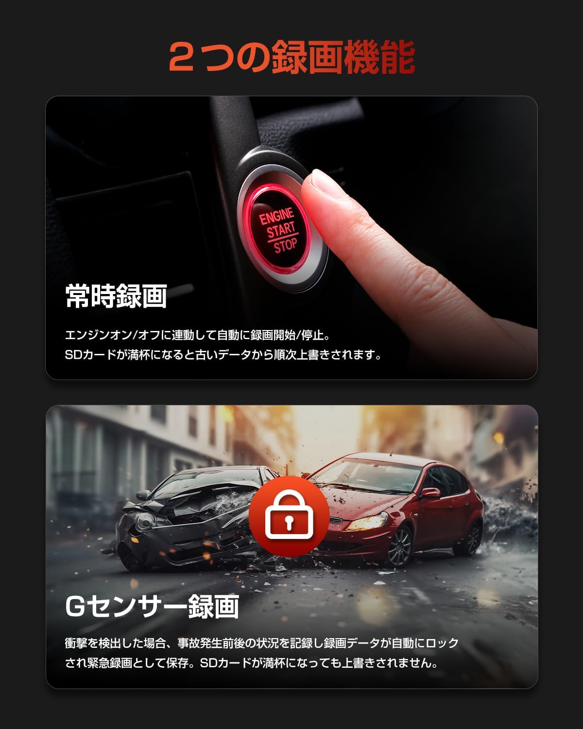 フロントカメラ フルHD 1080P WDR搭載 F2.0レンズ 120°広角 自動常時録画