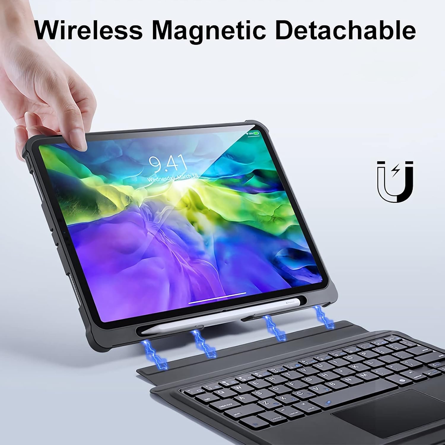 日本語配列タッチパッド付き取り外し可能ワイヤレスキーボード、鉛筆ホルダー付き