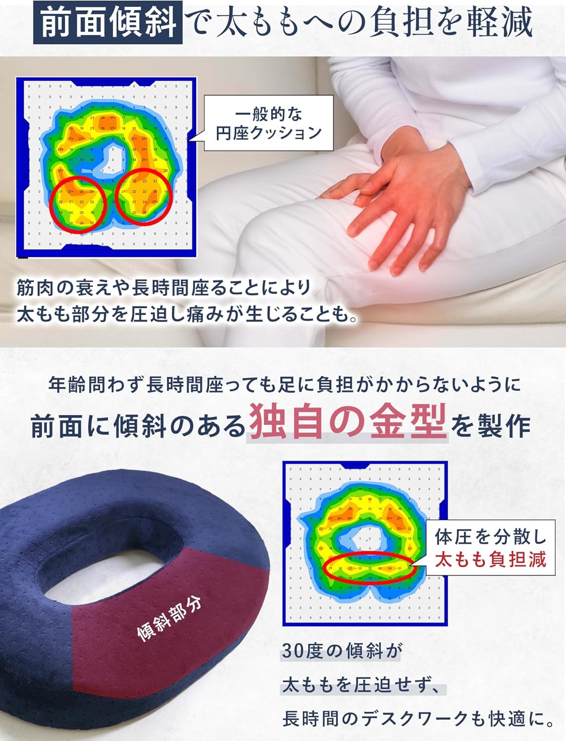 全体の硬さが安定し体圧をまんべんなく分散させ、お尻への負担を抑えてくれます