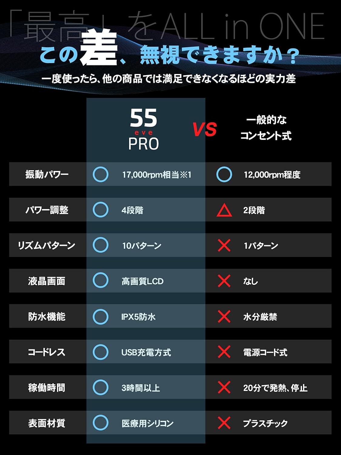 液晶モニター、10種類リズムパターン & 4段階パワー調整、コードレス、USB充電、高品質シリコン素材、静音仕様、