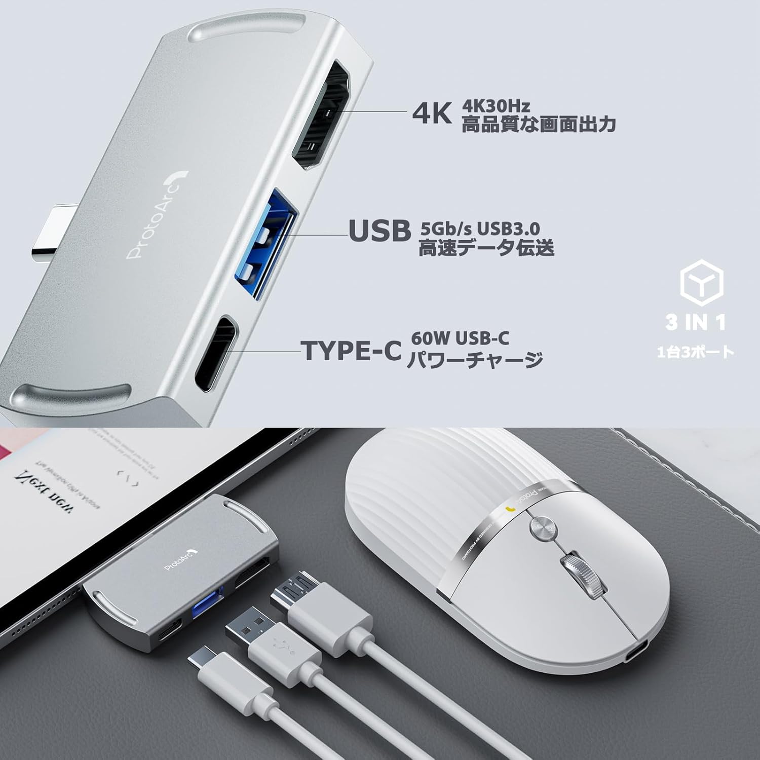 ProtoArc 2in1 Hub Mouse USB-Cハブマウスセット