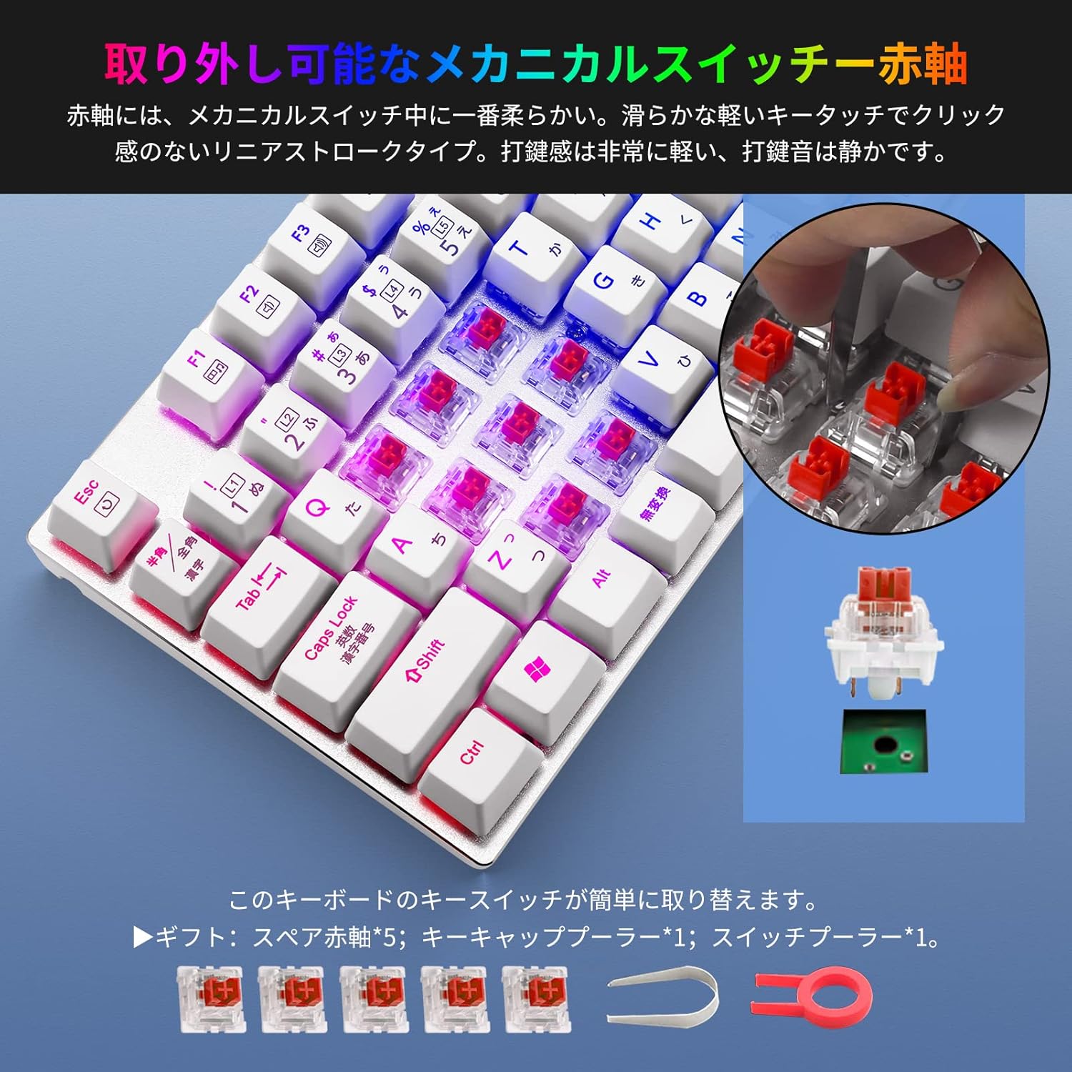 赤軸・青軸を採用 フルサイズ109キー Type-C USB有線接続 全キー防衝突
