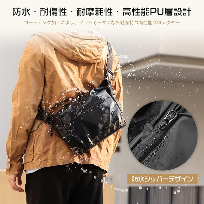 スリングバッグ 仕切り調整可 サイドハンドル&ショルダーバッグ 撥水加工