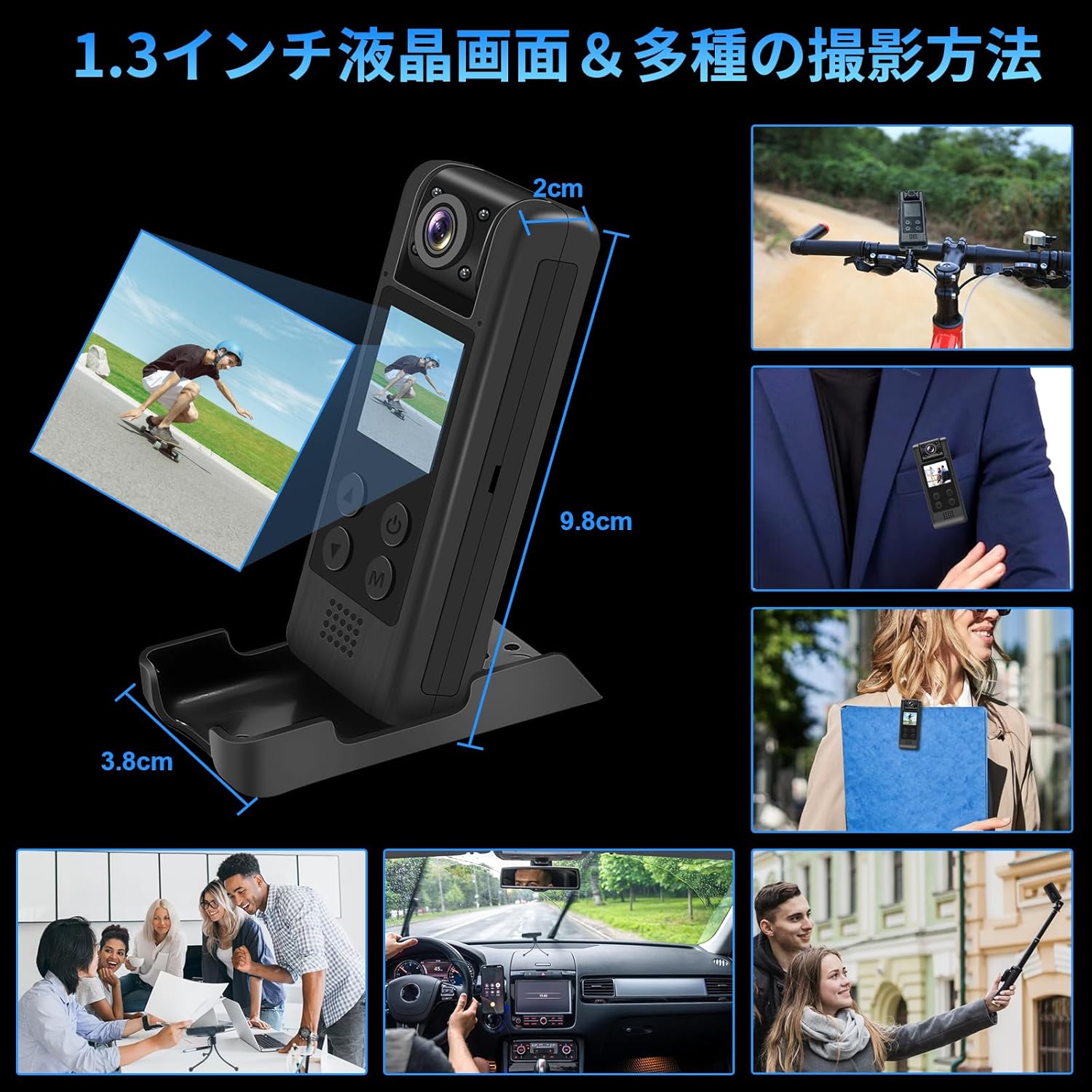 ボディカメラ WiFi スマホ連動 安定に録画&写真撮影 1.3インチ液晶画面 180°回転レンズ 120度広角