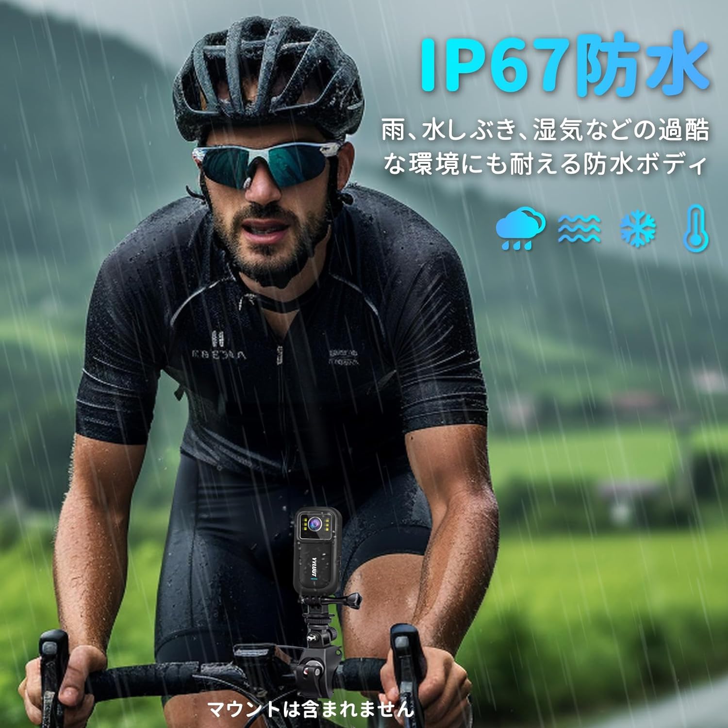ビデオカメラ IP67本機防水 防水中カメラ スポーツカメラ バイクカム 8-10時間ループ録画1080P画質