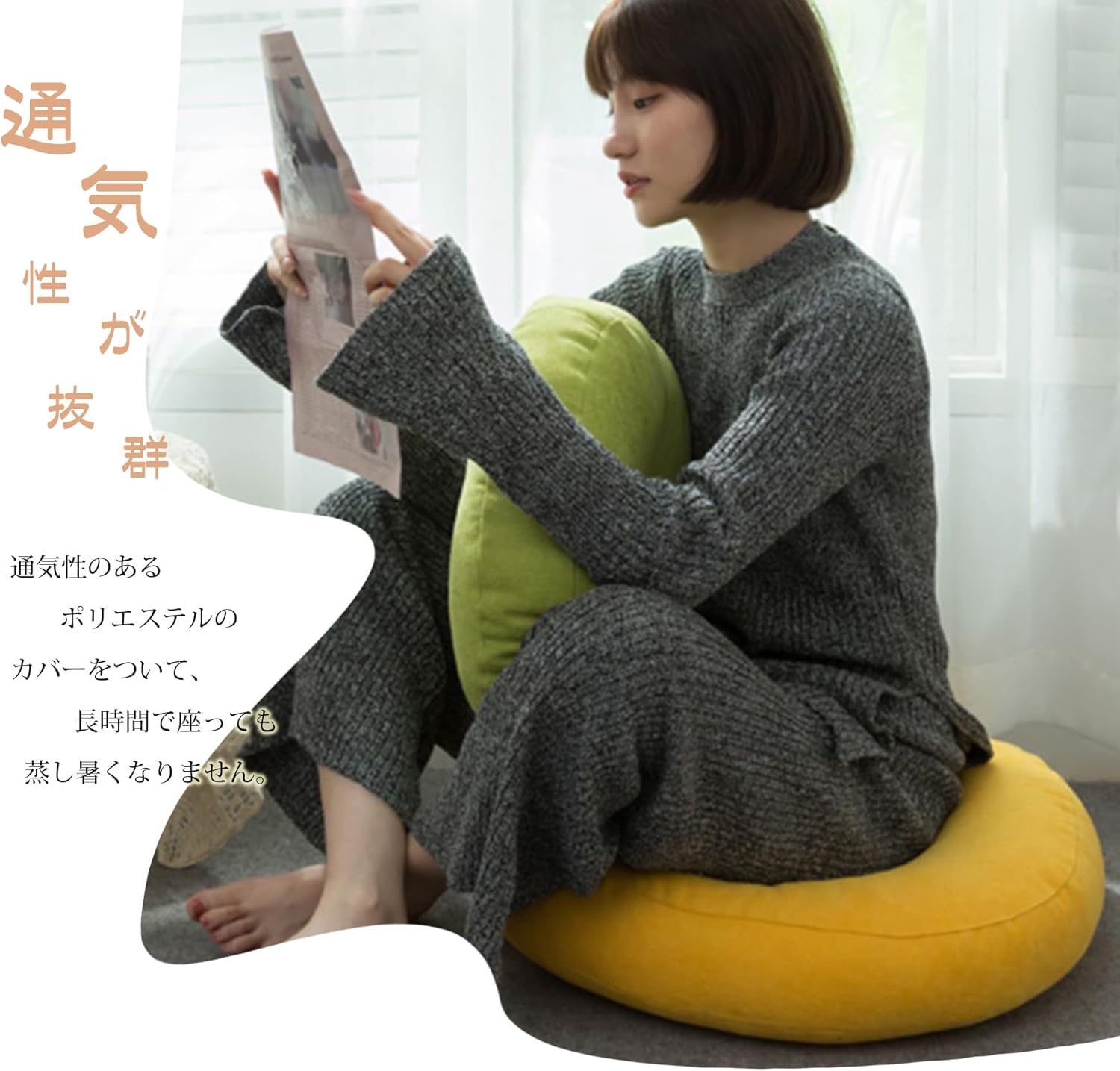 円形 丸 畳チェアパッド カバー付き 風合いドビー ごろ寝クッション 椅子用 チェアクッション オフ丸洗い おしゃれ ナチュラル 北欧 シンプル ィスチェアー用 和室 (クリーム入り,45*45CM)