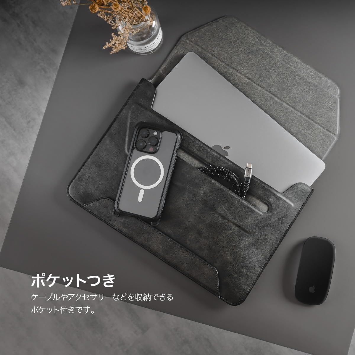 14インチ 対応 ケース スタンド 機能 収納 ポケット 付 パソコンケース 薄型