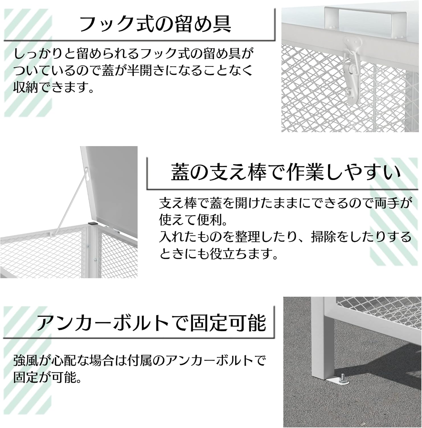 ゴミ箱 スチール 屋外 ふた付き ゴミ荒らし防止 カラスや野良猫からゴミを守る ホワイト ごみ収集ボックス ゴミ保管庫 (340L)