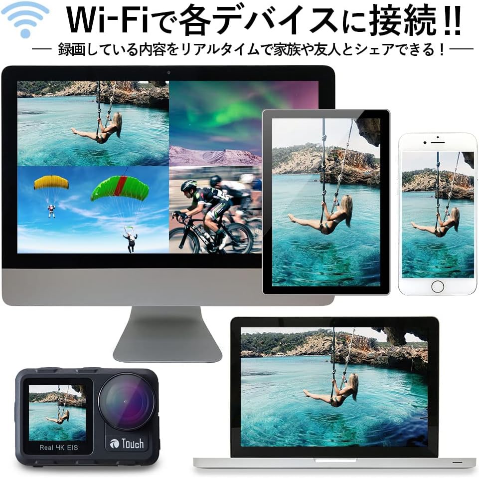 アクションカメラ 小型 4K/60fps 録画 両面ディスプレイ