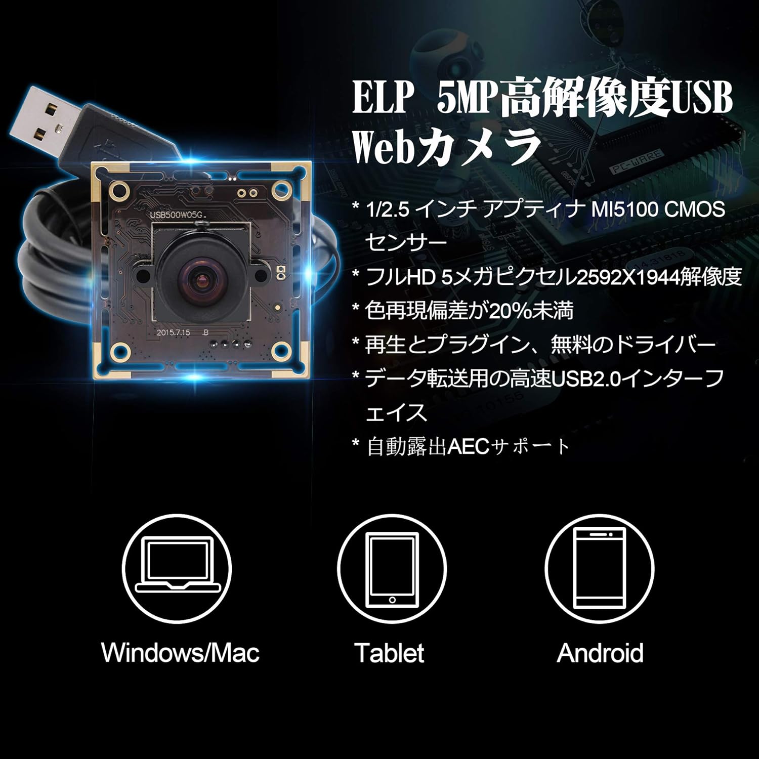 500万画素 Webカメラ 広角85° ウェブカメラモジュール フルHD 高速 1080P 30FPS カメラ Aptina MI5100 Webかめら FHD 5mp 1080p 30fps カメラモジュール USBデジタル顕微鏡、電子拡大鏡、電子接眼レンズ、ウェブカメラ、スマートホームなどに適用 UVC Windows/Mac/Android/Raspberry pi対応 カメラ