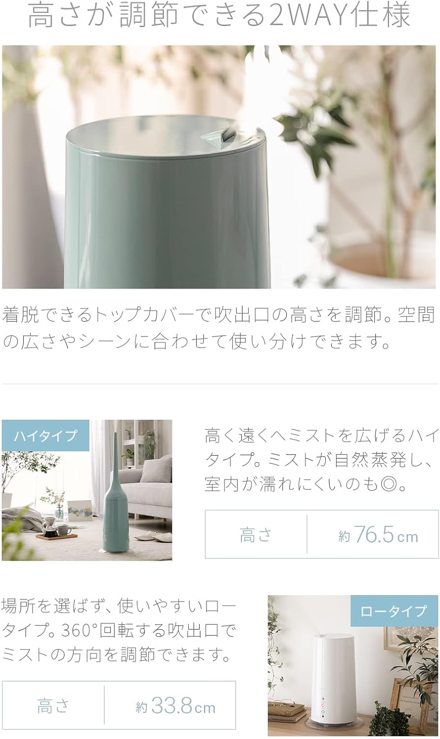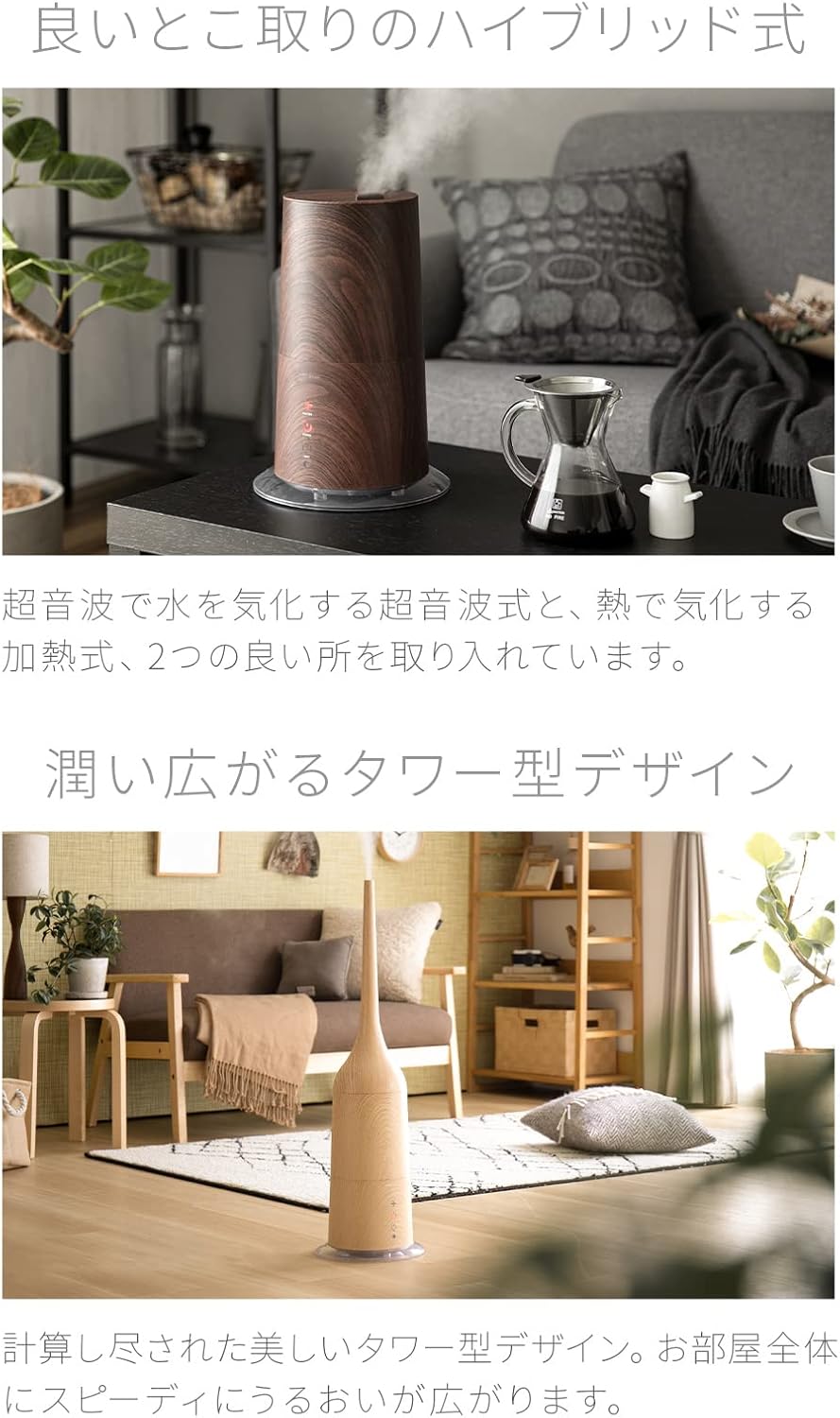 ハイブリッド式 | 超音波で水を気化する超音波式と、熱で気化する加熱式、2つの良い所を取り入れています