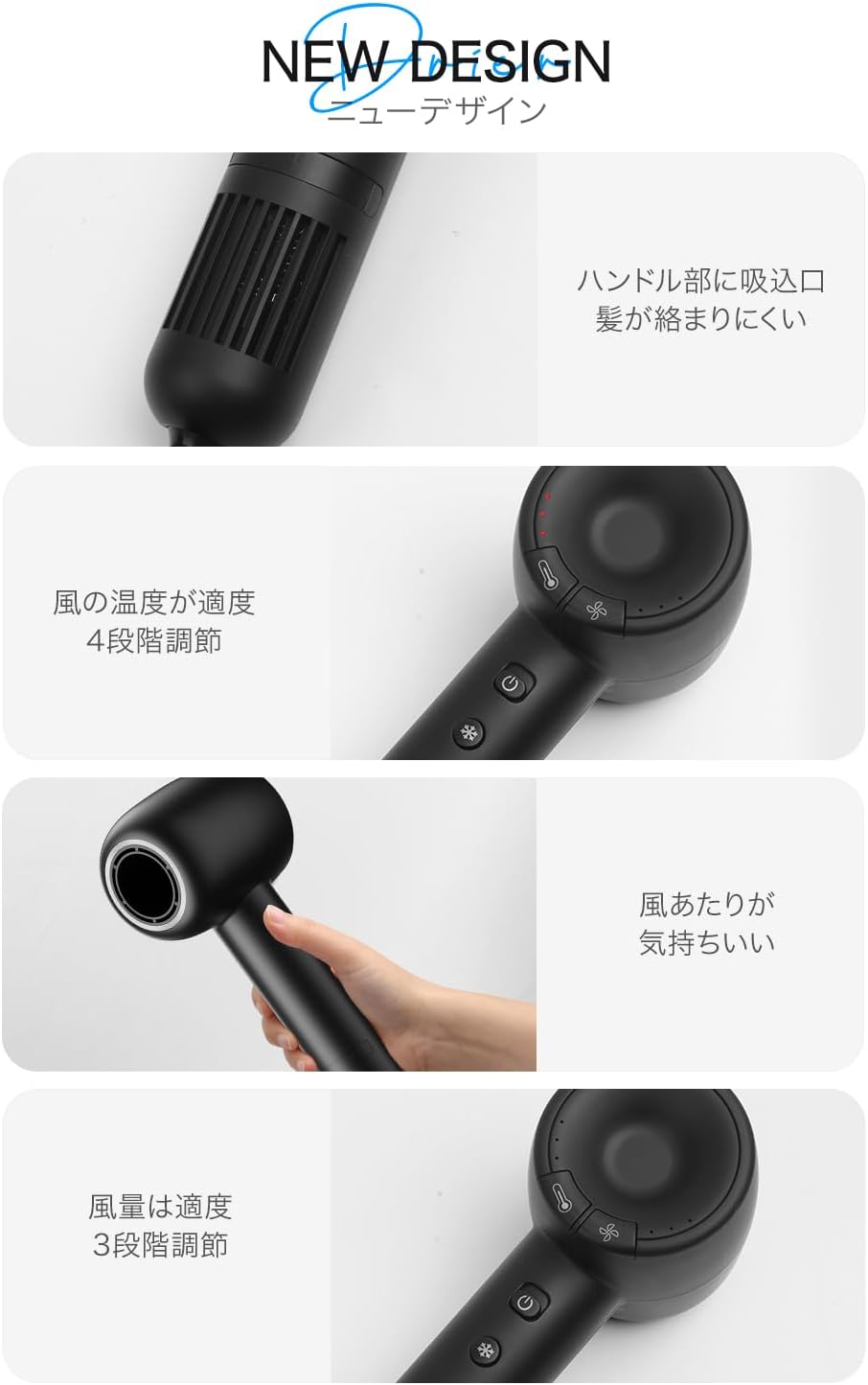 温度4段階調整 風速3段階調整 風量温度メモリー 速乾ドライヤー 小型 コンパクト 軽量 低騒音 アタッチメント付き マグネットフィルター 持ち運び便利