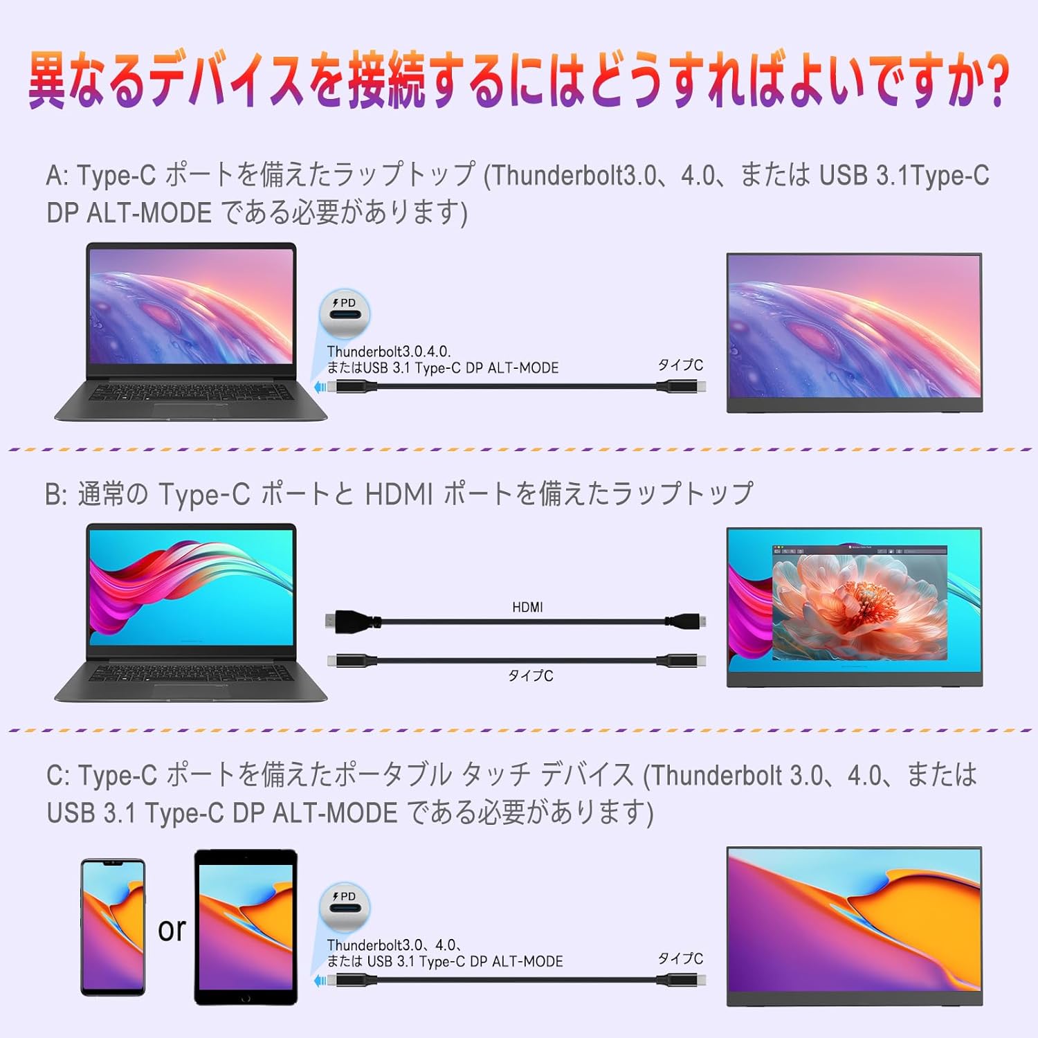 ラップトップモニター タッチスクリーン FHD HDR プラグ&プレイ USB-C HDMI ゲーミング IPS