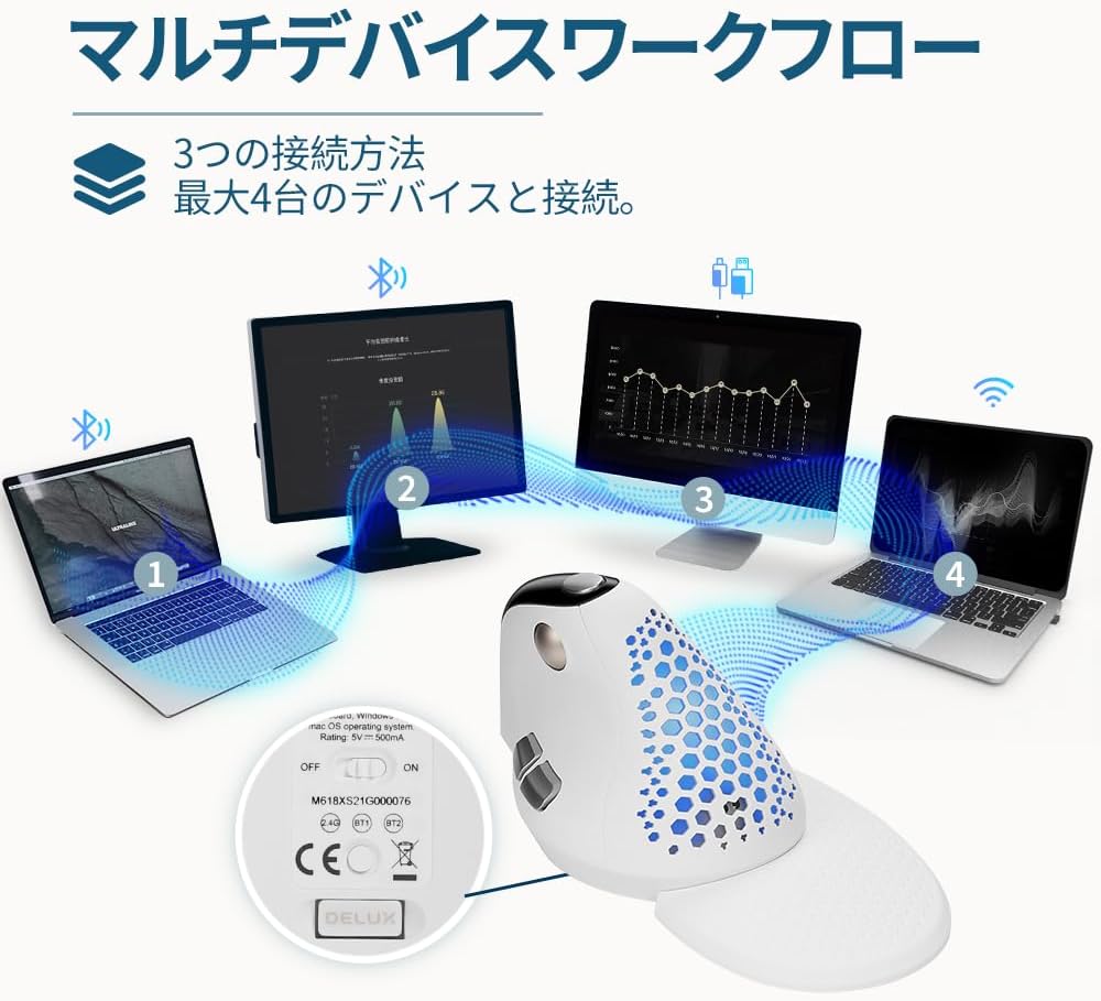 無線、OLEDスクリーン、6ボタン&親指ホイール、静音、7200 DPI、3モード:有線