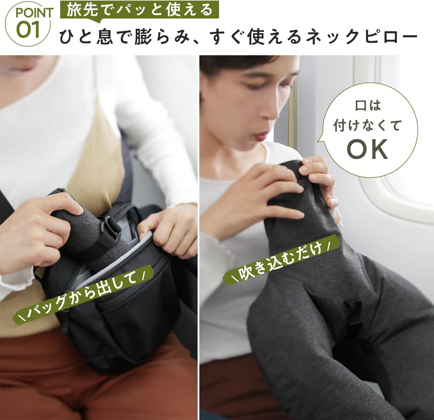 (一息で膨らむ/たためば片手サイズ/洗濯可) 首 枕 コンパクト エアー (旅行/飛行機/車 などに) 首枕 ベージュ JA053BE