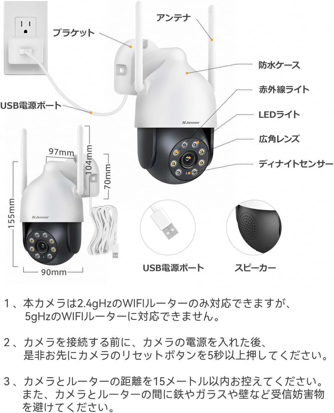 防犯カメラ 屋外 防水 wifi 自動追尾機能 JENNOV