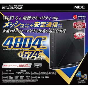 NEC11ax(Wi-Fi 6)対応 無線LANルーター親機 (4804+574Mbps)PA-WX5400HP