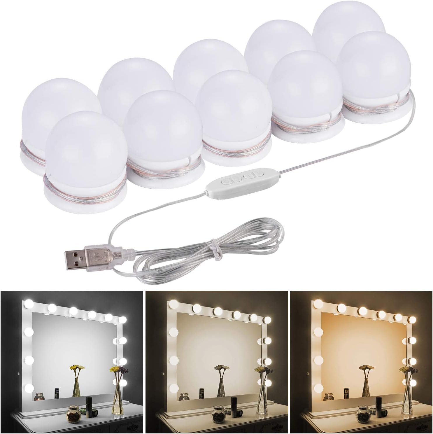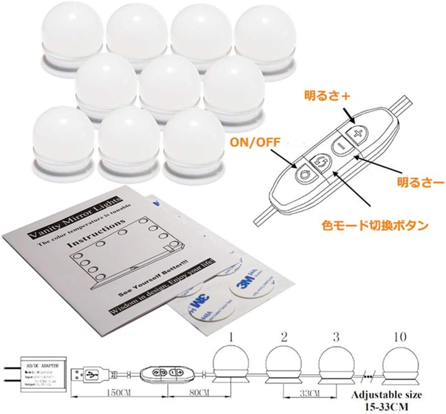 三色調光 明るさ10段階調整 LED化粧鏡電球 10個LED電球