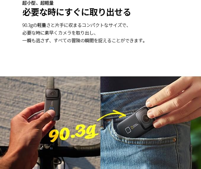水中カメラ ウェアラブルカメラ 90.3g 超小型 超軽量 4K 30fps EIS手ぶれ補正