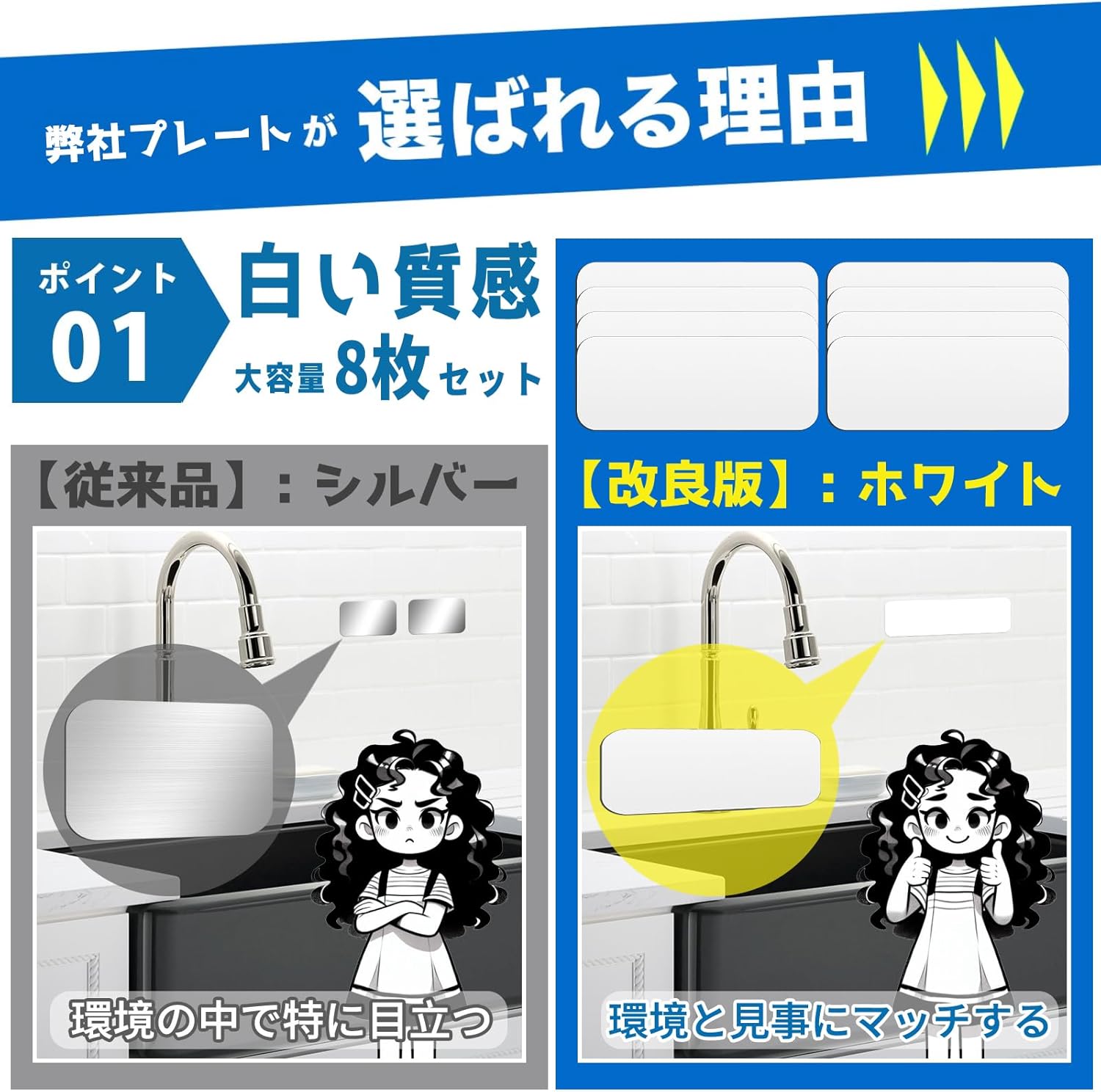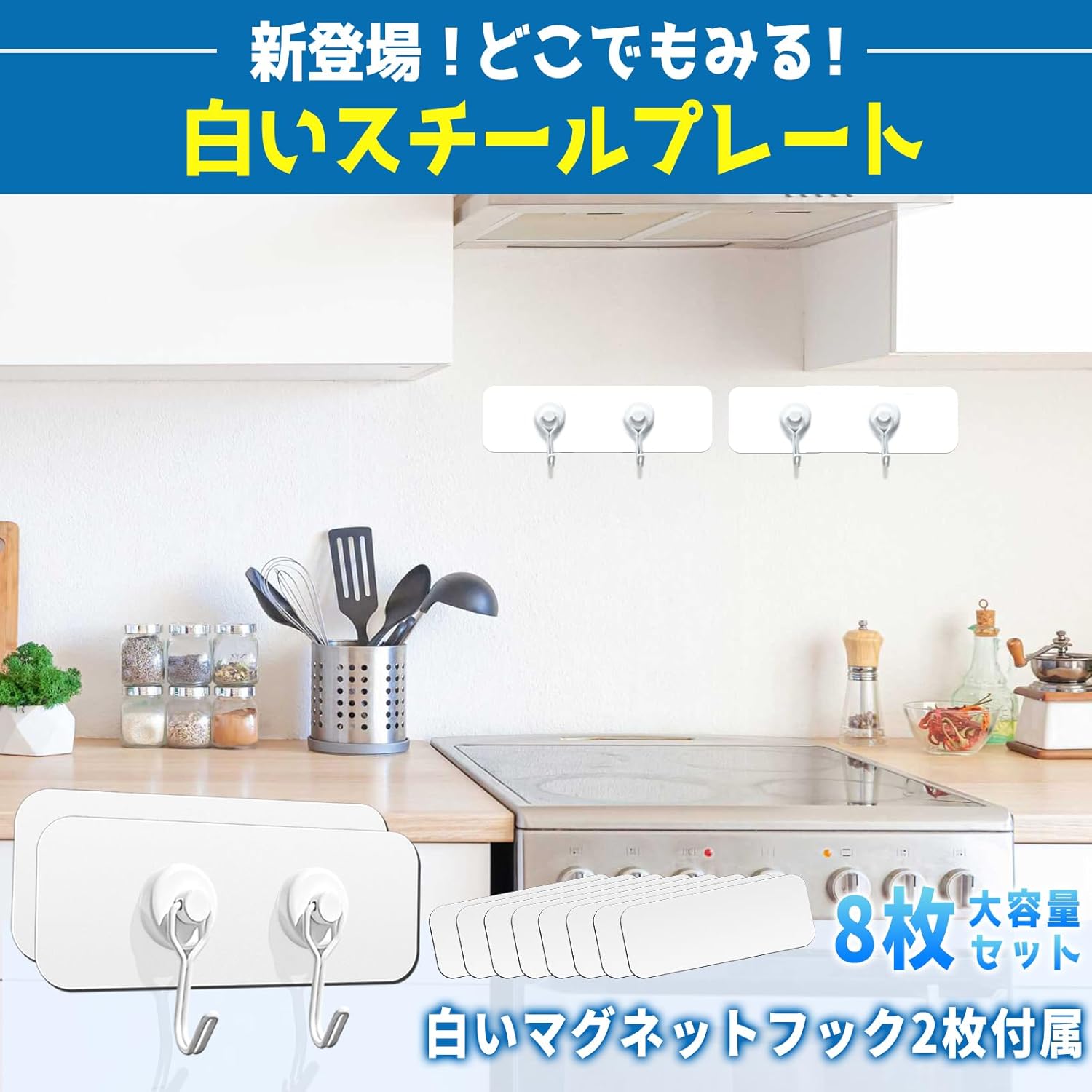 白い マグネットシート 8枚セット (150*48mm) 壁 マグネット用スチールプレート DIY