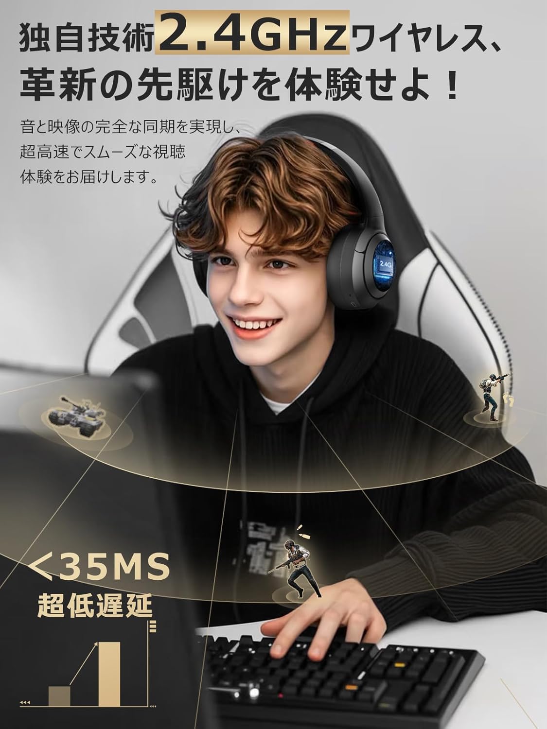ゲーミングヘッドホン Bluetooth5.4 有線 無線 両用 4WAY接続 最大60時間音楽再生