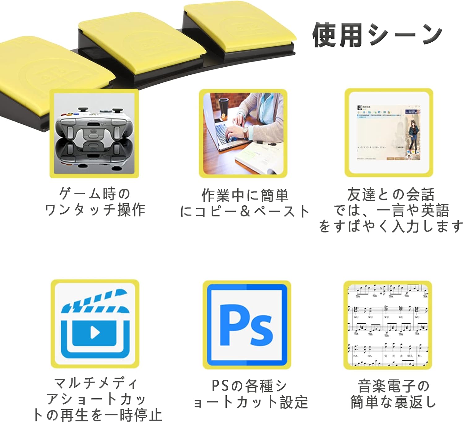 ワイヤレスBluetooth有線USBデュアルモード、トリプルフットペダルスイッチコントロール