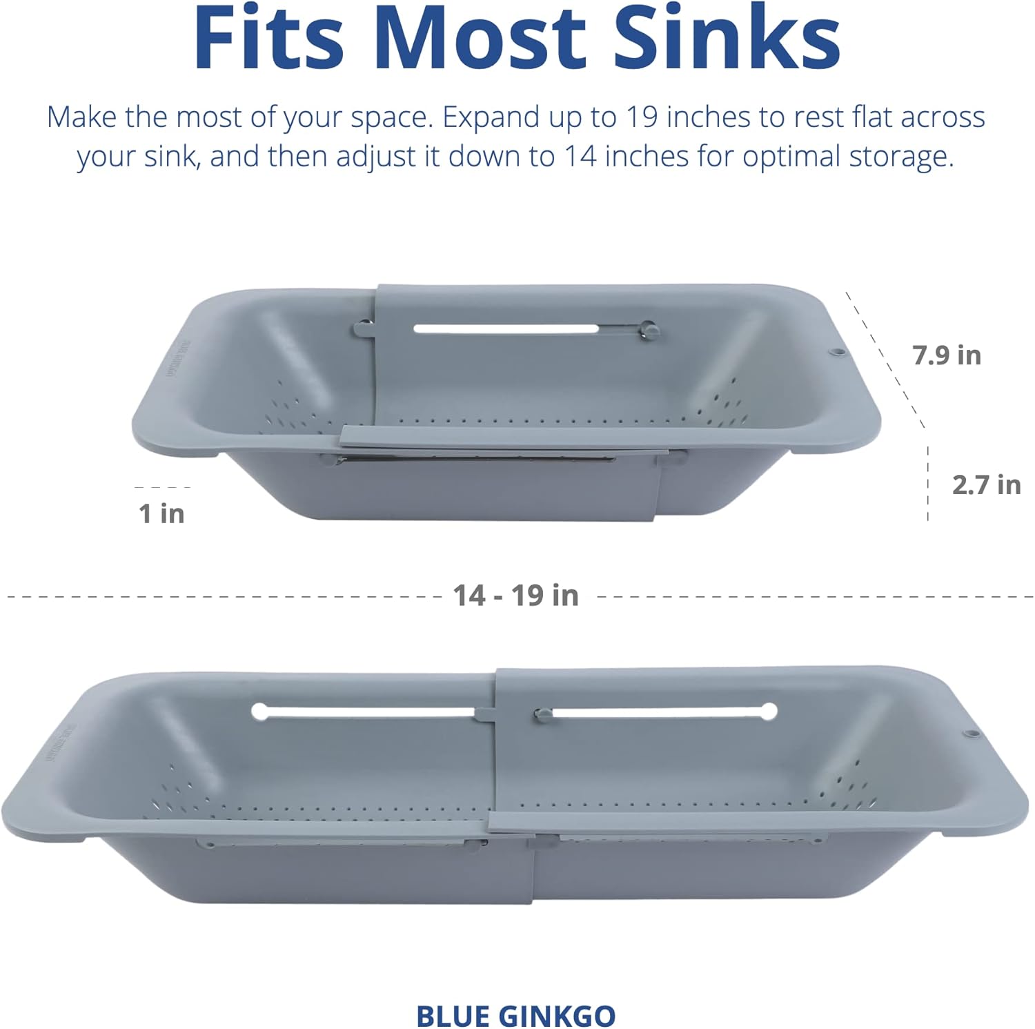 野菜や果物を洗い、調理したパスタの水切りと食器の乾燥 - 拡張可能 - 新しいホームキッチンの必需品 ポリプロピレン (幅7.9 x 長さ14-19 x 高さ2.75) - グレー