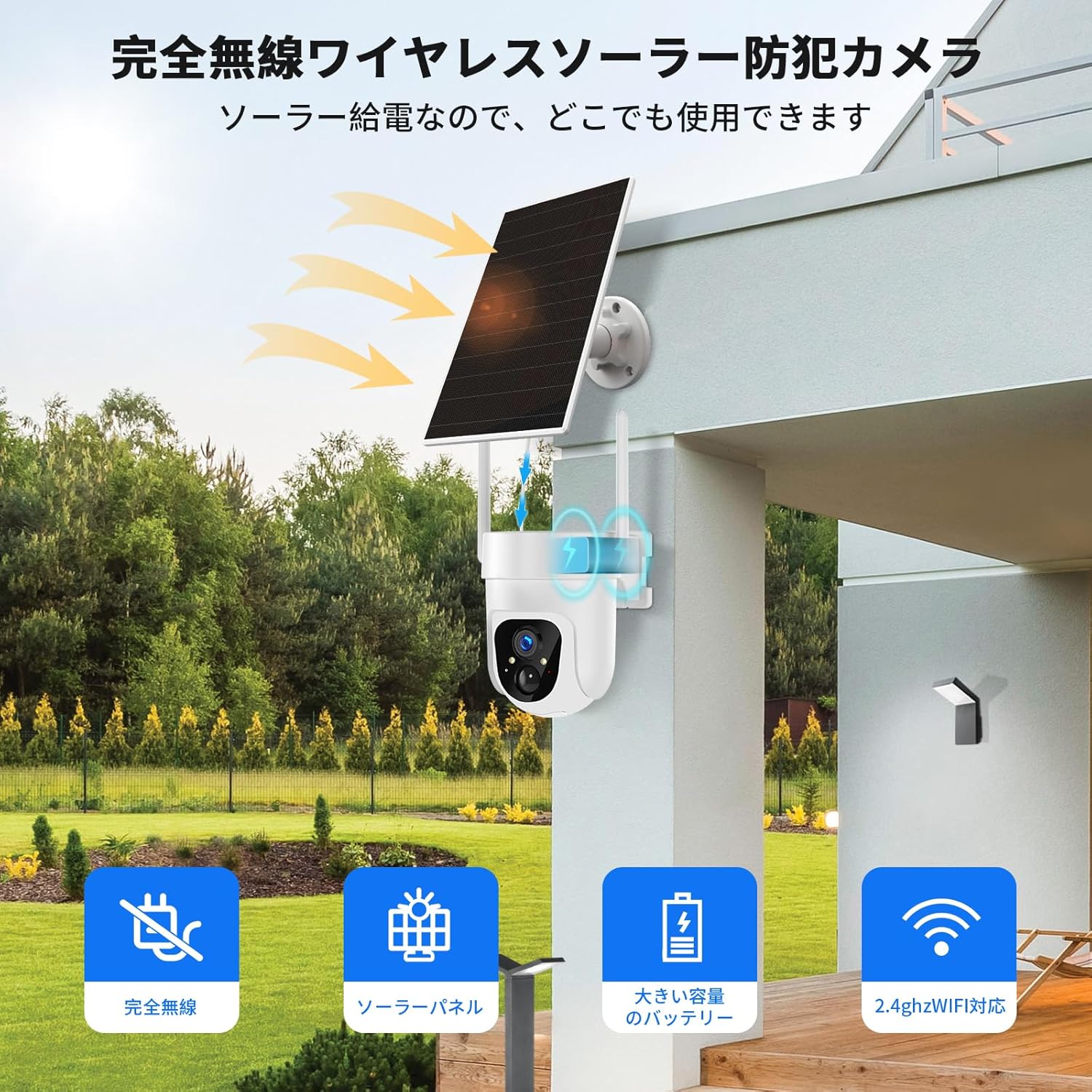 Hiseeu防犯カメラソーラー ワイヤレス防犯カメラ 110°広角レンズ 配線不要 双方向音声