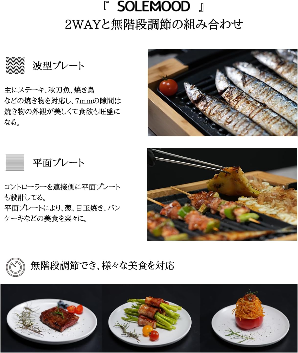 油減らし 加熱迅速 無階段調節 「美味しく焼ける秘訣」コンパクトプレート