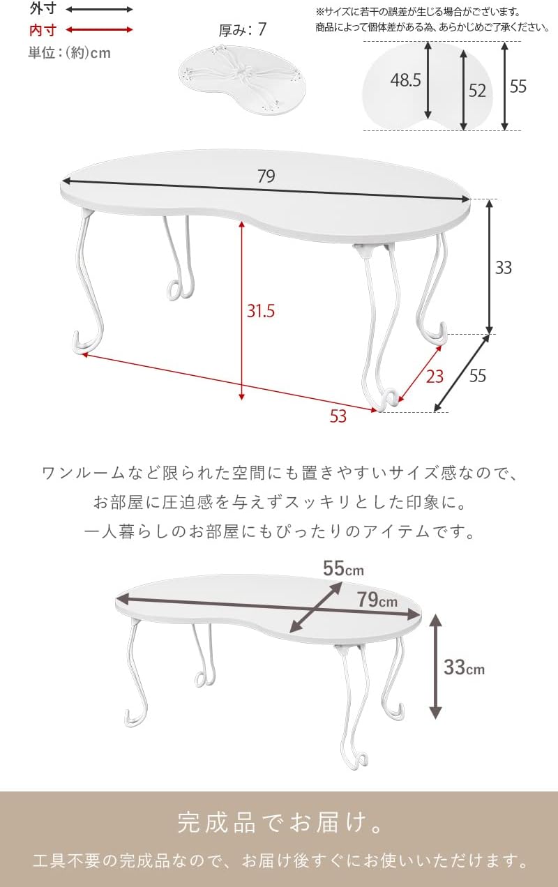 折りたたみ ビーンズテーブル 韓国 インテリア 幅79 ホワイト 1台 MT-6639WH