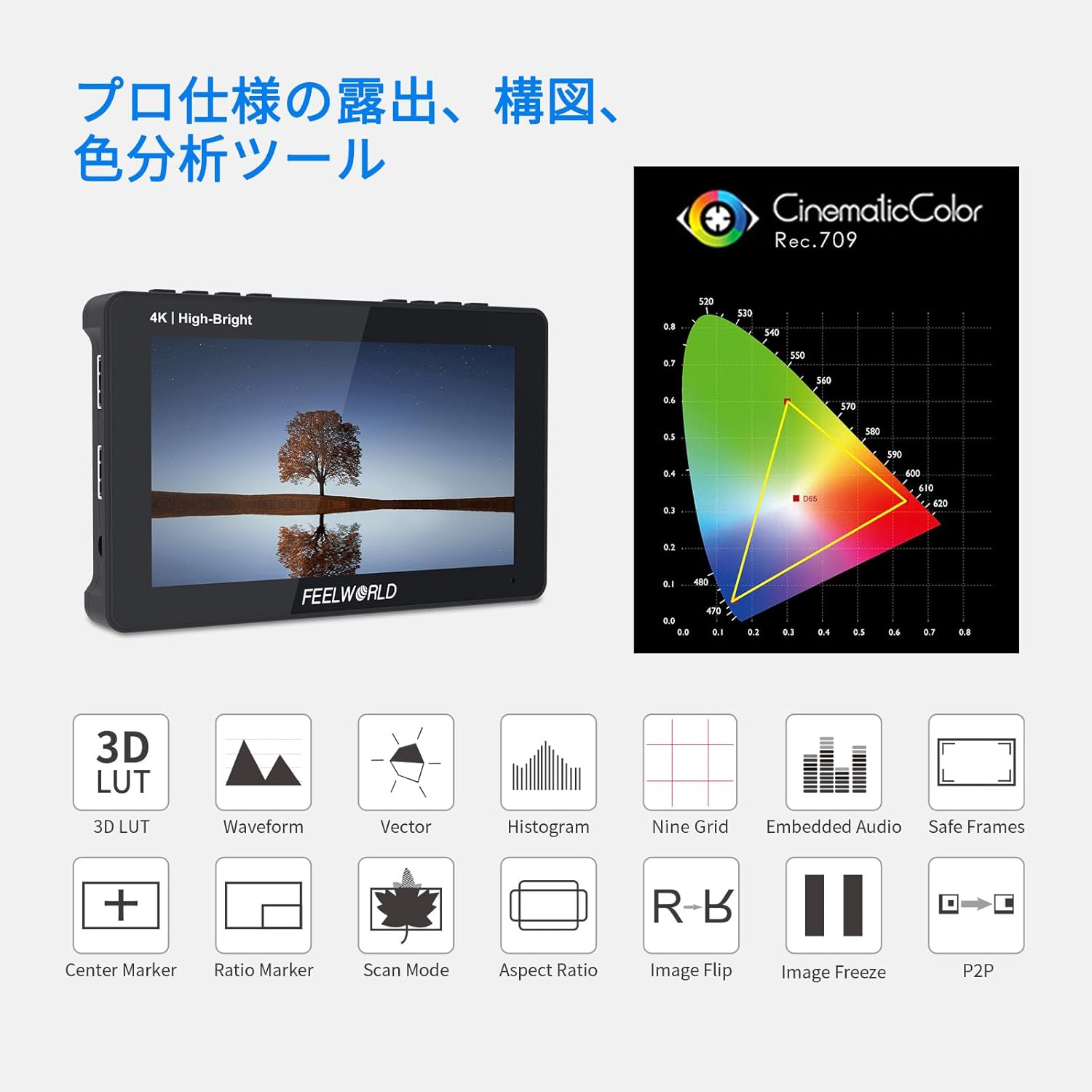 FEELWORLD F5 PROX 5.5インチ1600nit高輝度DSLRカメラフィールドモニター3D CM0726