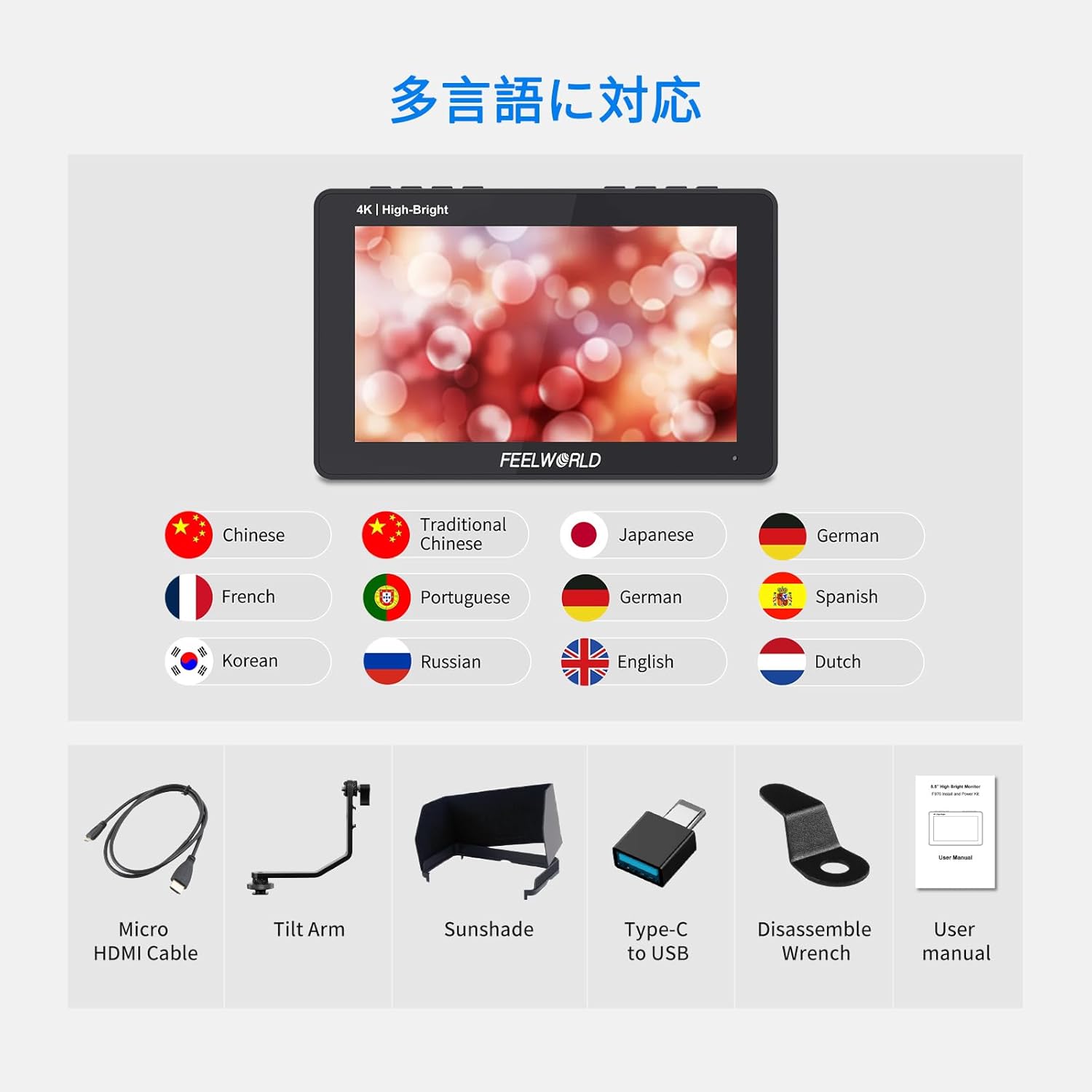 LUT波形タッチスクリーン4K HDMI/Type-C入力1920x1080IPS小型フルHD(F970外付け供給キット付き)