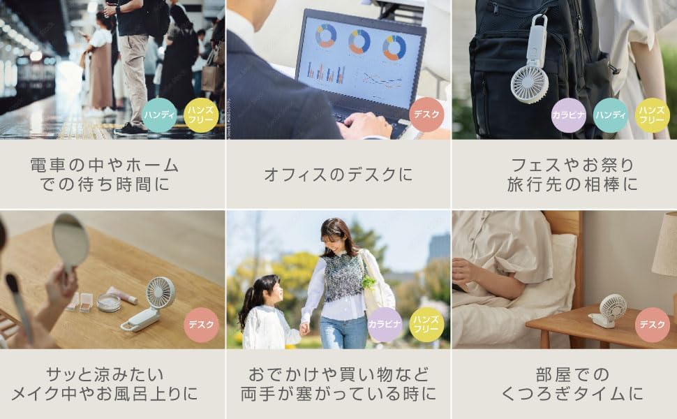 Type-C対応 カラビナ&ストラップ付き 小型 携帯扇風機