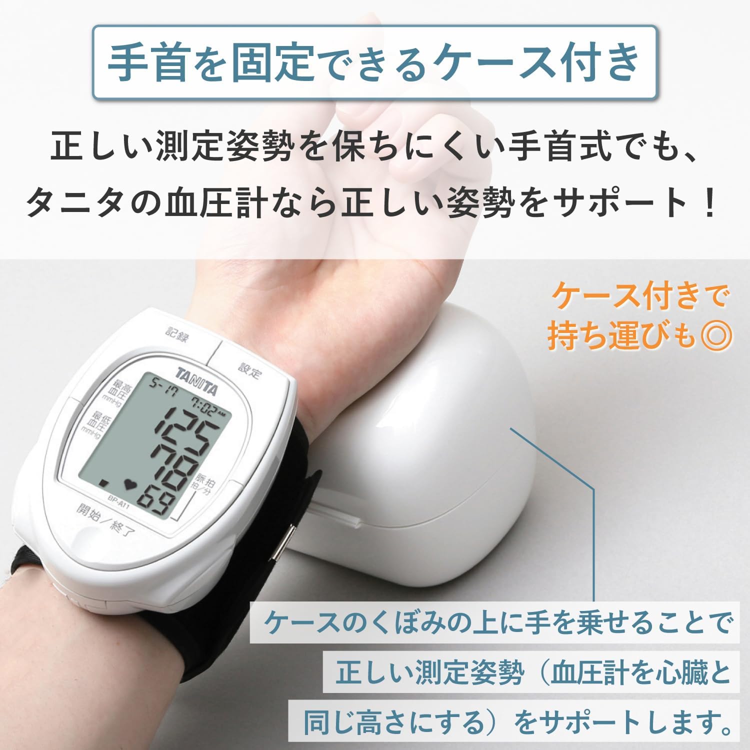 1人分の測定結果を60回記録メモリー(最高・最低血圧値、脈拍数) ・直近の測定結果2回分の平均値を表示(平均値表示) ・持ち運びできるコンパクトな手首式(ケース付き)